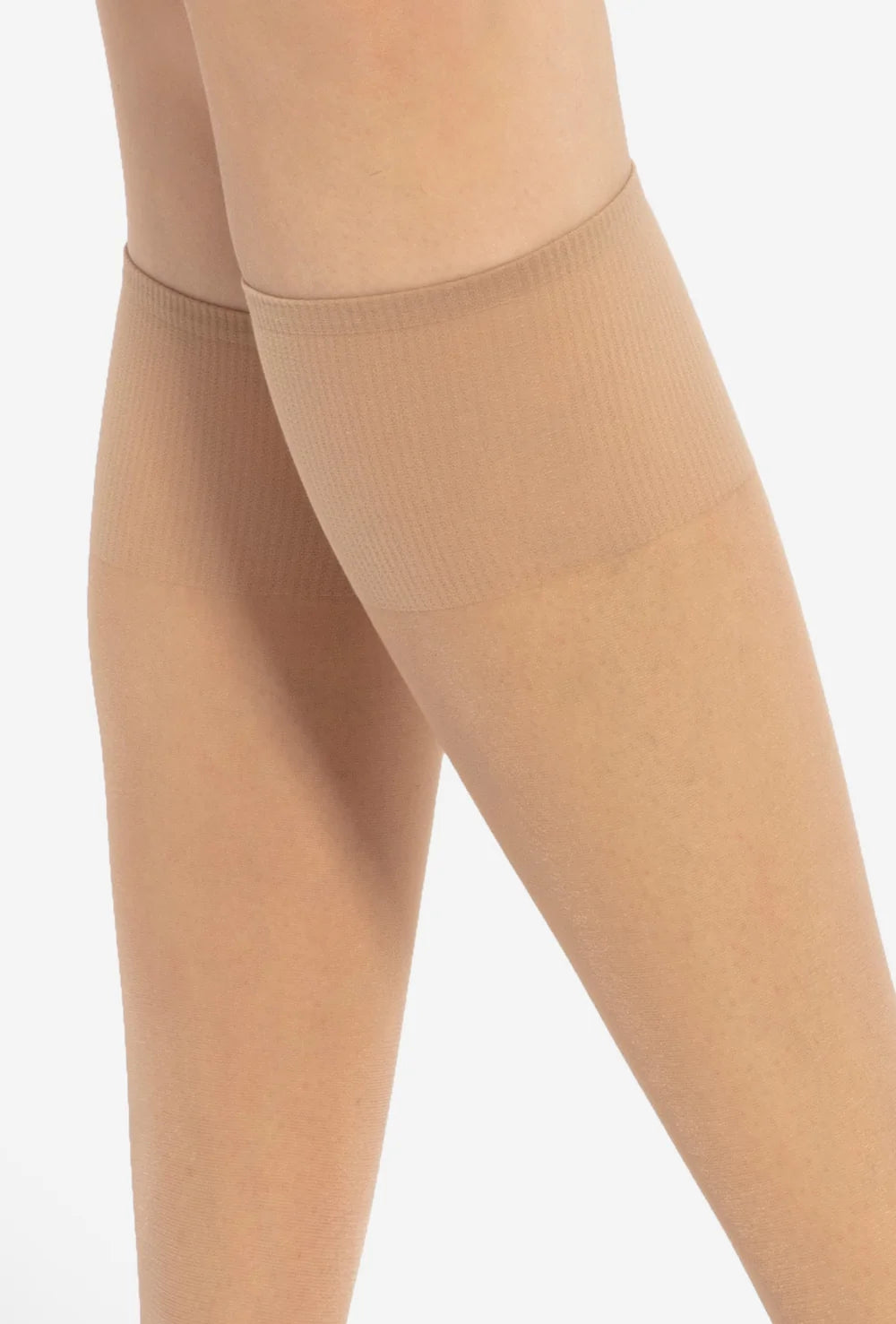 - Komfort noszenia kobiecych podkolanówek Avi zapewniają także szerokie, nieuciskające ściągacze, które utrzymują całość konstrukcji w jednym miejscu. Estetyczne, bez zbędnych przeszyć wyglądają szykownie i elegancko.