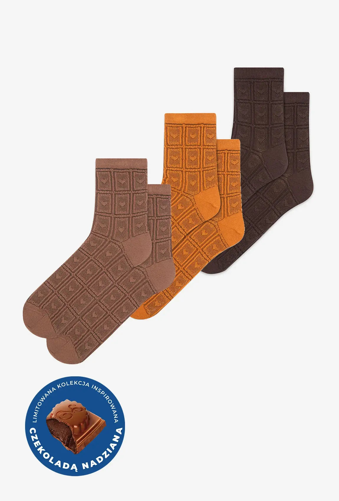 3-pak skarpetek w odcieniach czekolady- Gatta x Wedel