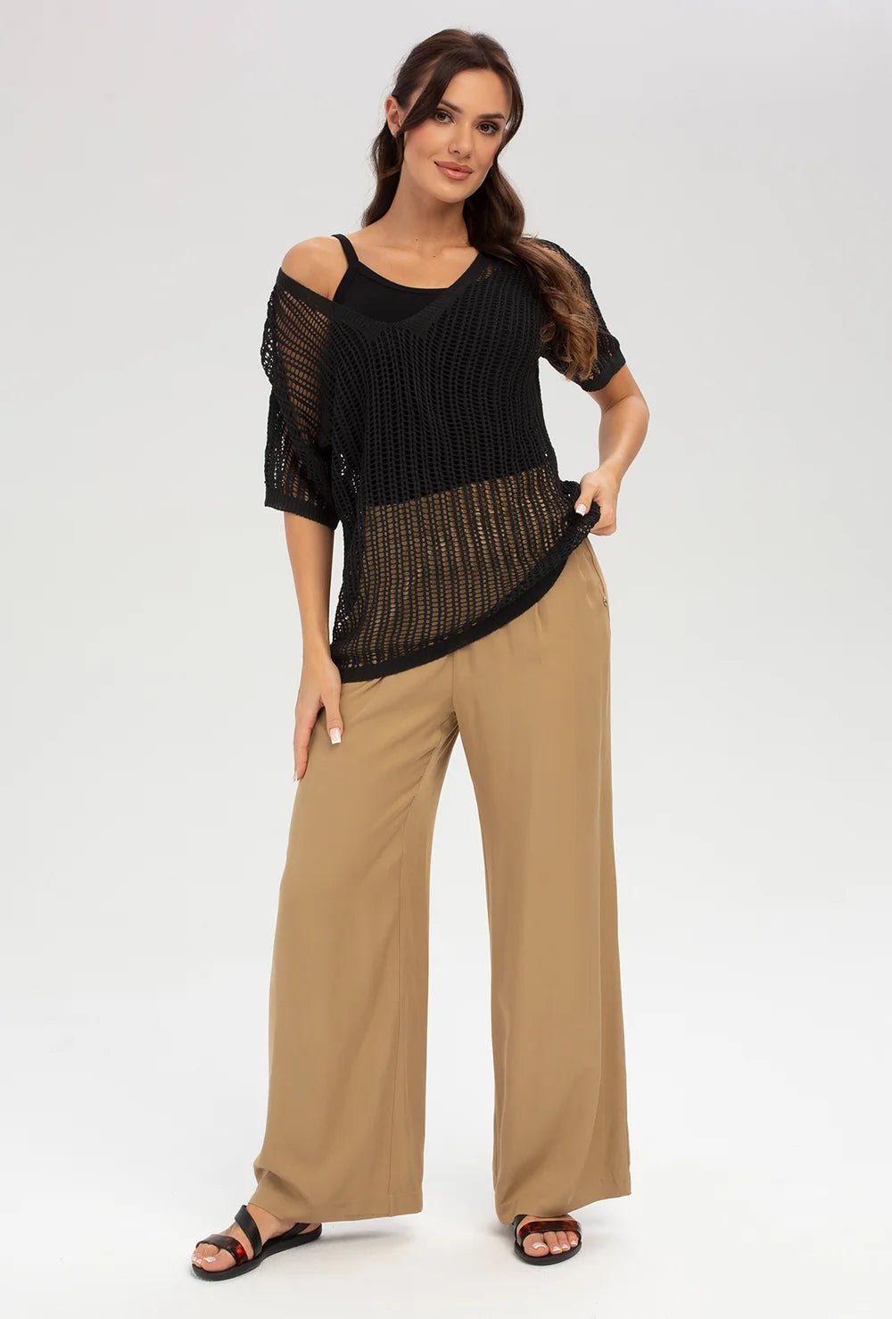 Jeśli lubisz, gdy ubranie spełnia więcej niż jedną funkcję, to świetnie się składa, ponieważ ażurowe pareo plażowe Net zaprojektowano z taką myślą. Narzutkę możesz wykorzystać nie tylko nad basenem lub na plaży, ale także jako element codziennej stylizacji. Wystarczy, że pod pareo założysz dopasowany kolorystycznie top. Całość dopełnią zwiewne spodnie, np. model Leni wykonany w 100% z wiskozy, oraz klapki lub sandały. Zdecyduj się na zakup naszej ażurowej bluzki plażowej i twórz niezapomniane, letnie stylizacje każdego ciepłego i słonecznego dnia!