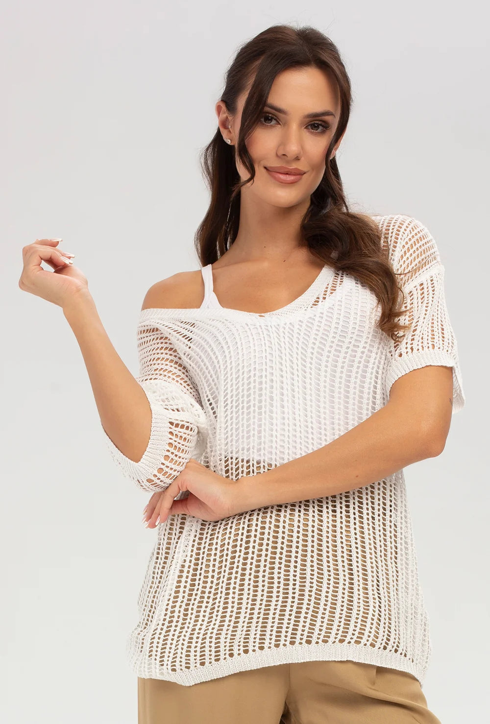 Szukasz lekkiej narzutki, którą będziesz mogła założyć na strój kąpielowym podczas relaksu na plaży lub nad basenem? Co powiesz na ażurowe pareo plażowe Net marki Gatta? Ten model wyglądem przypomina dzianinową bluzkę z krótkim rękawem oraz dekoltem w serek. Fantazyjny splot materiału jednocześnie osłania ciało i pozwala skórze oddychać. Na Gatta Online nasza ażurowa bluzka plażowa czeka na Ciebie w jednym, uniwersalnym rozmiarze, ale za to w aż trzech kolorach: białym, czarnym i beżowym. Który z nich trafi do Twojego koszyka zakupowego?