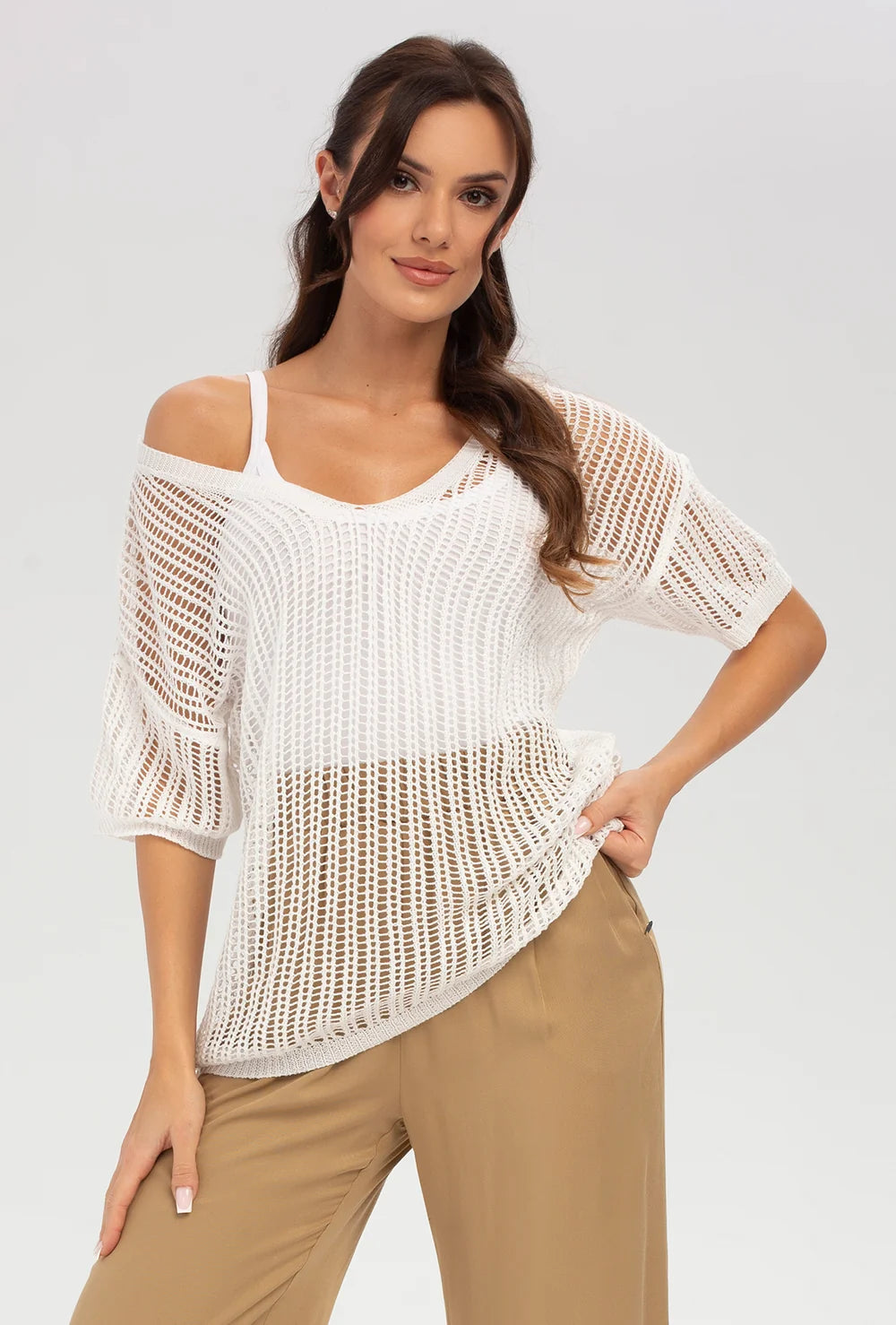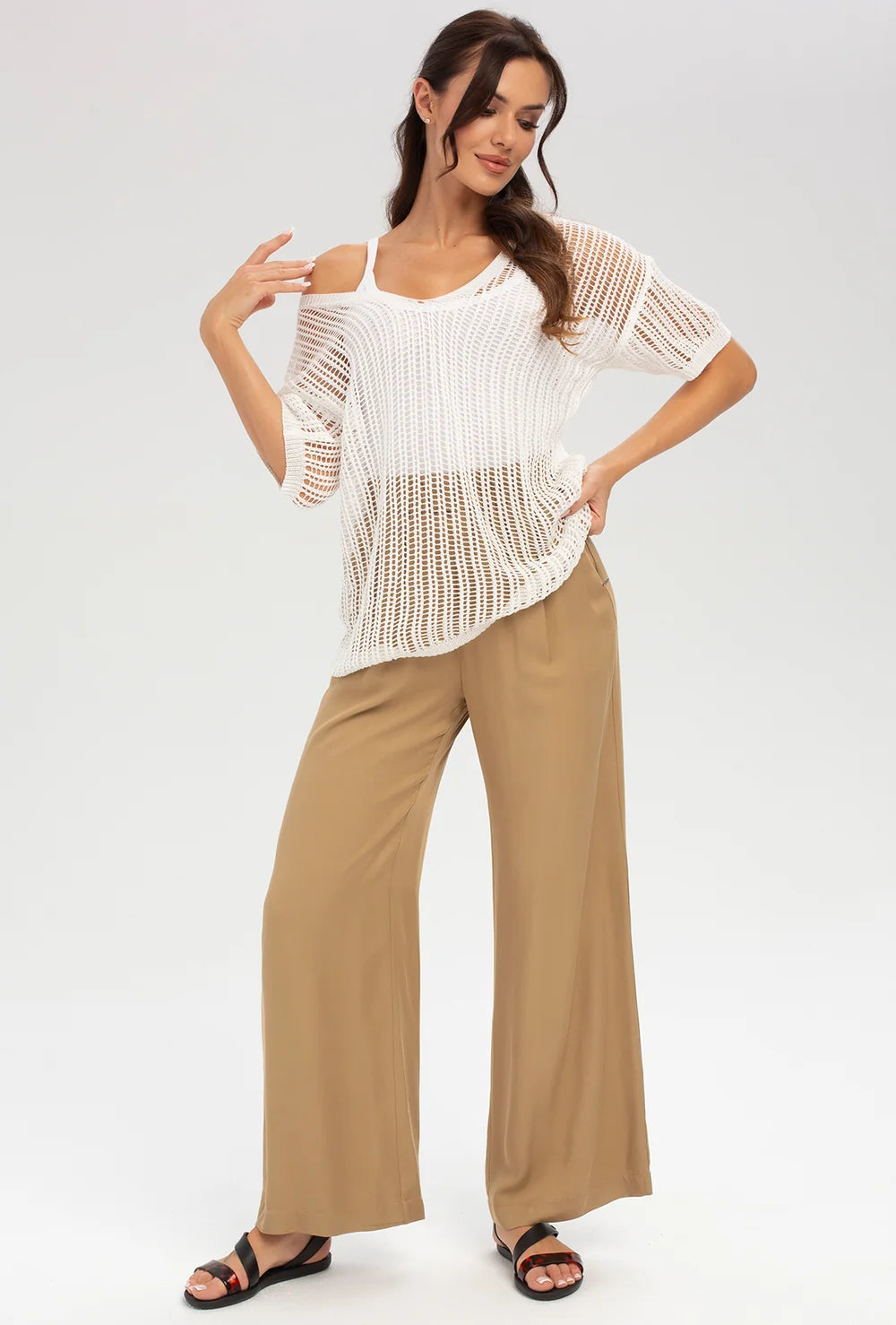 Jeśli lubisz, gdy ubranie spełnia więcej niż jedną funkcję, to świetnie się składa, ponieważ ażurowe pareo plażowe Net zaprojektowano z taką myślą. Narzutkę możesz wykorzystać nie tylko nad basenem lub na plaży, ale także jako element codziennej stylizacji. Wystarczy, że pod pareo założysz dopasowany kolorystycznie top. Całość dopełnią zwiewne spodnie, np. model Leni wykonany w 100% z wiskozy, oraz klapki lub sandały. Zdecyduj się na zakup naszej ażurowej bluzki plażowej i twórz niezapomniane, letnie stylizacje każdego ciepłego i słonecznego dnia!