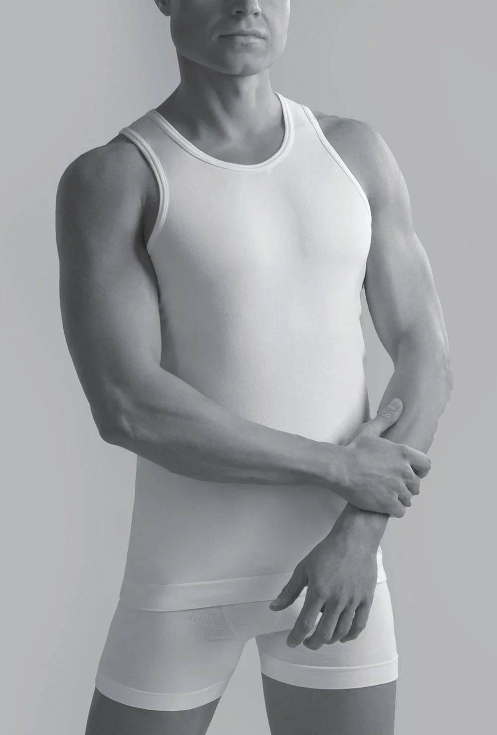 Podkoszulek męski Seamless Tank stworzony w kolorze głębokiej czerni i śnieżnej bieli to niezastąpiona baza wielu Twoich stylizacji.