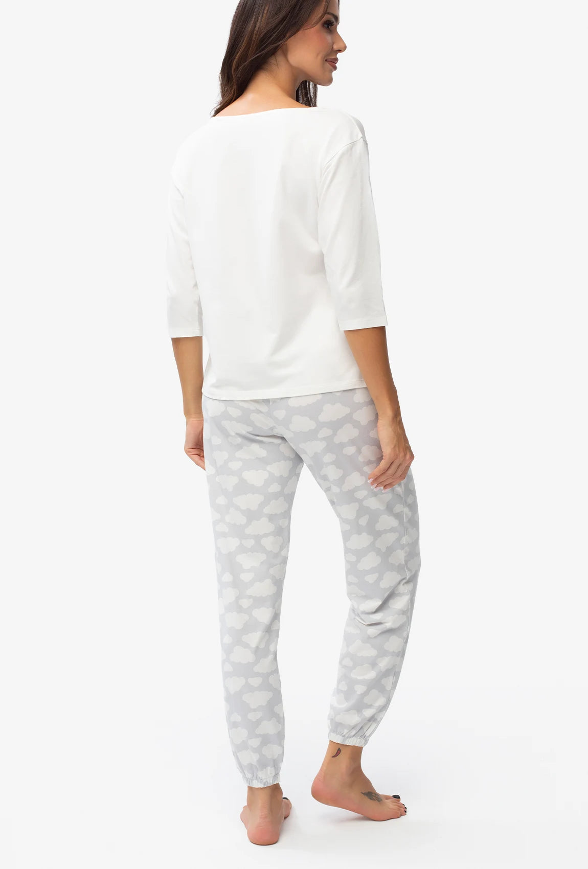 Bawełniana piżama damska Clouds to połączenie naturalnego komfortu, swobodnego fasonu i subtelnego wzornictwa. Idealna do snu i domowego relaksu – miękka, wygodna i ponadczasowa.