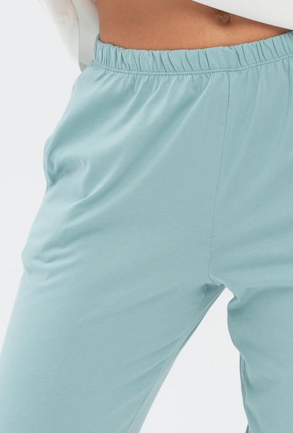Bawełniana piżama damska Luna w miętowym kolorze to wygodny komplet do snu i domowego relaksu. Naturalny materiał, swobodny krój oraz subtelny wzór w serduszka sprawiają, że model łączy komfort z lekkim, kobiecym stylem.