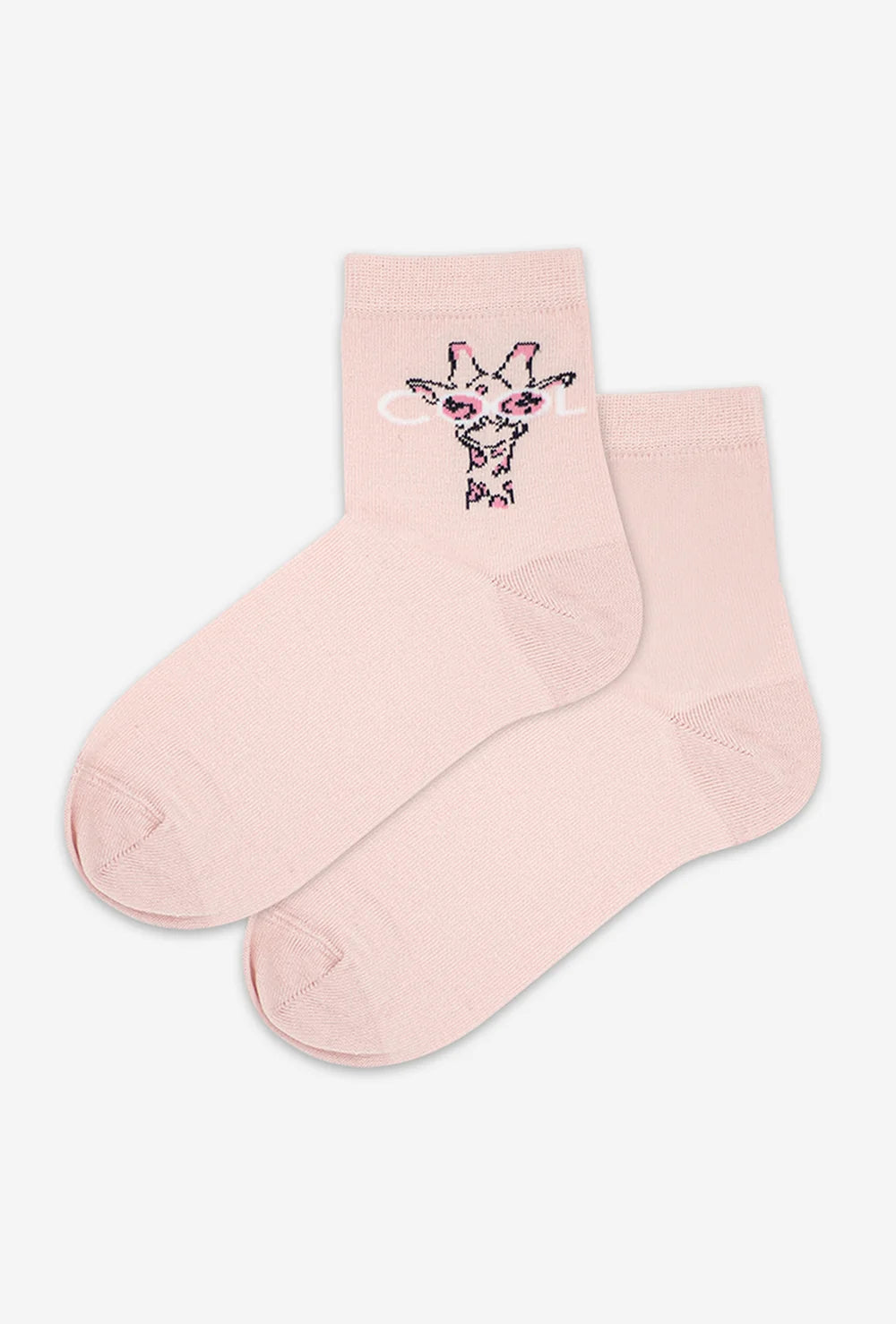 Różowe skarpetki damskie z żyrafą urozmaicą wiele letnich stylizacji