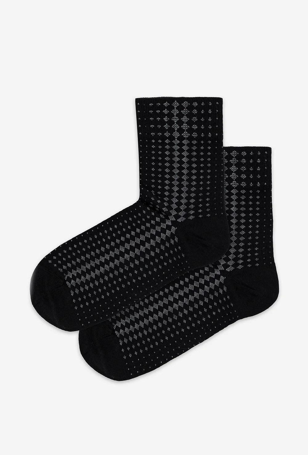 Sięgnij po bawełniane skarpetki damskie Gatta z geometrycznym wzorem, które będą doskonałym uzupełnieniem Twojej jesiennej garderoby. Są to skarpetki o klasycznej wysokości nad kostkę. Zwieńczono je elastycznym ściągaczem, który nie uciska, a jednak zabezpiecza skarpetki przed zsuwaniem. Uwagę zwraca nie tylko geometryczny wzór, ale również klasyczna i neutralna paleta barw. Skarpetki te są dostępne w odcieniu butelkowej zieleni, w klasycznej czerni i delikatnym beżu. Możesz wybrać jedne z nich lub zdecydować się na cały zestaw.