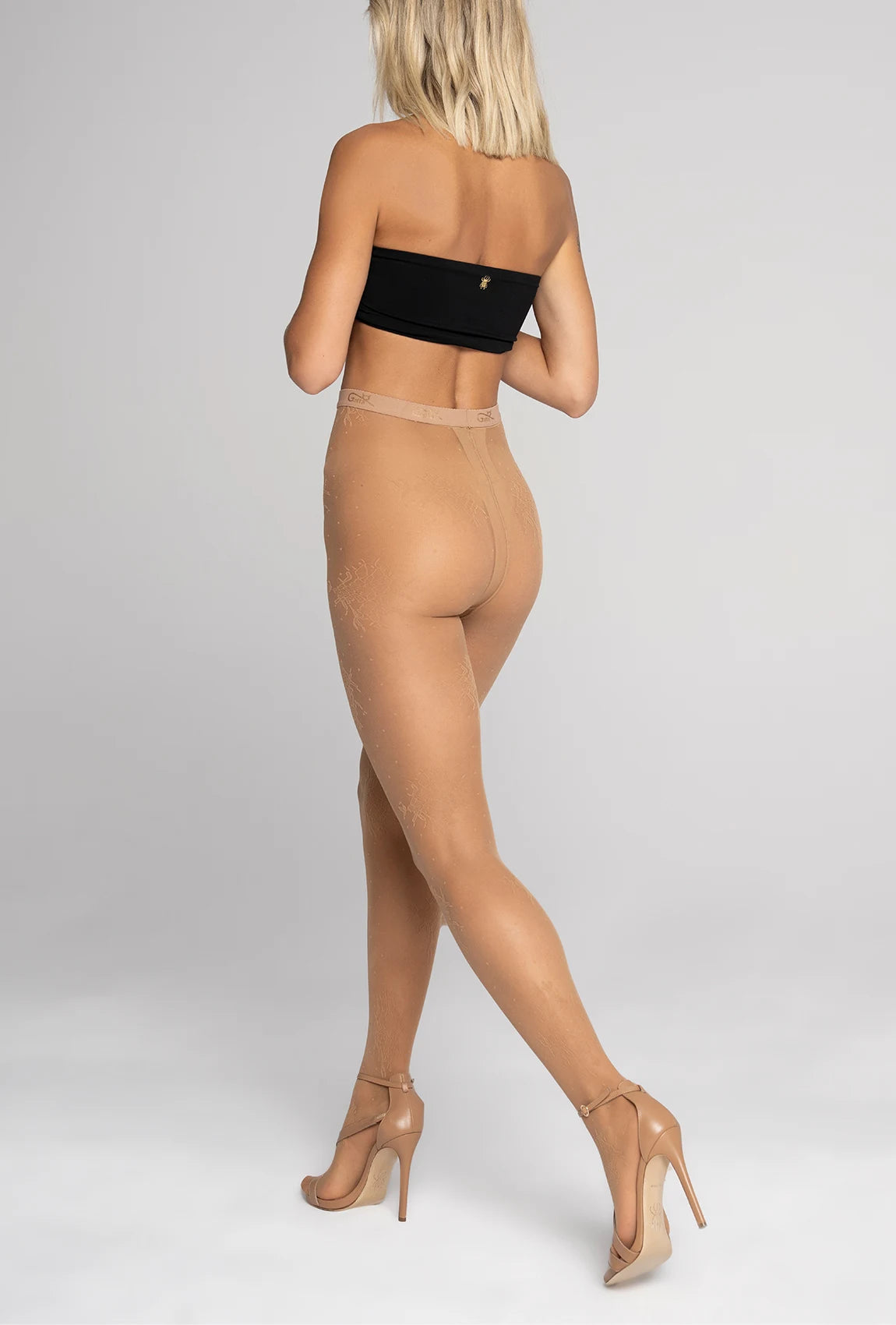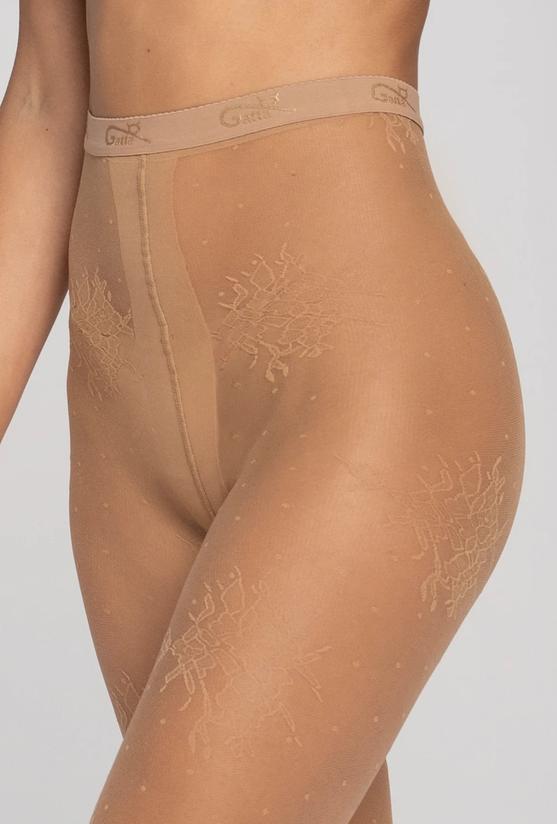 Beżowe rajstopy z kwiatowym wzorem Garden z kolekcji Zień x Gatta