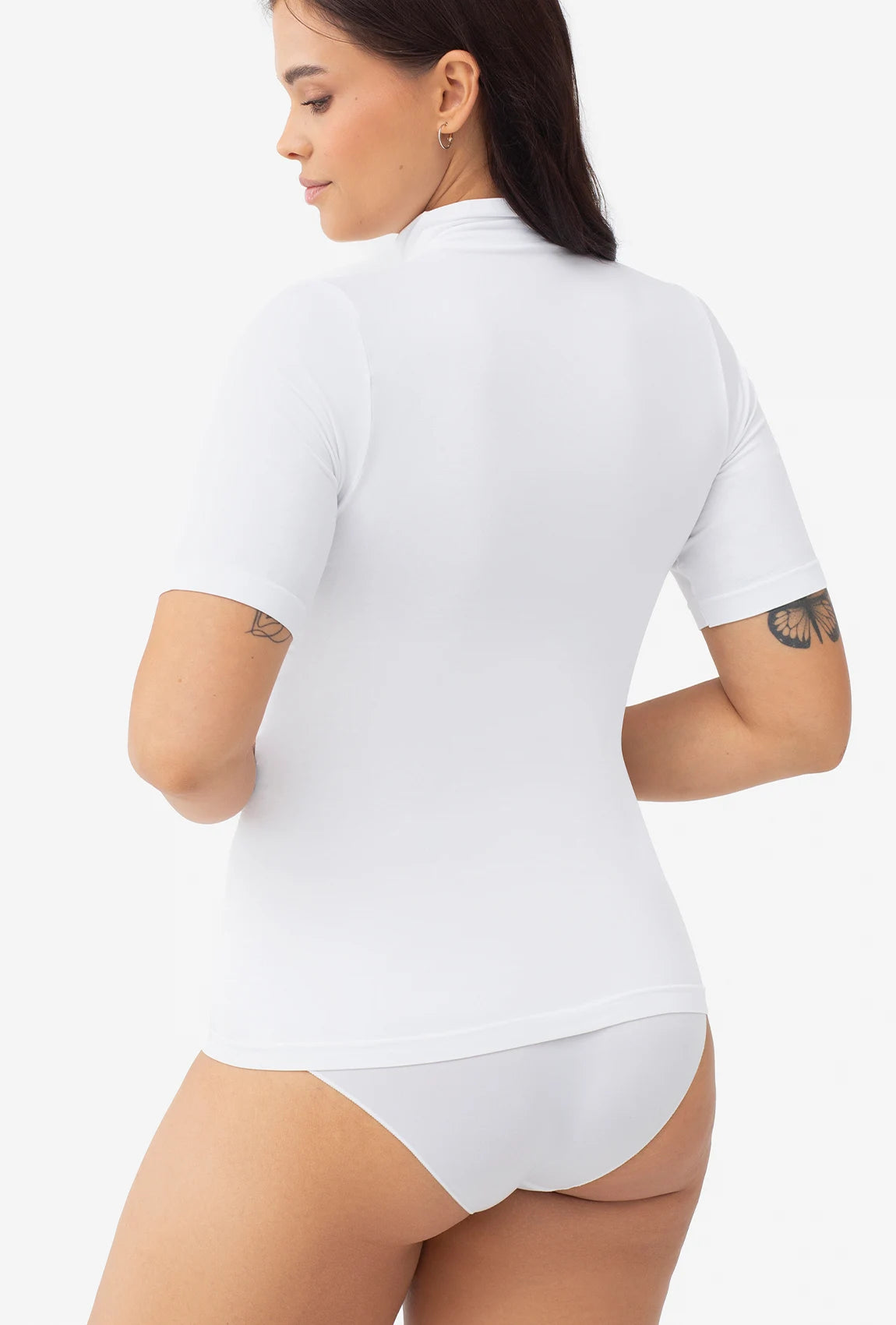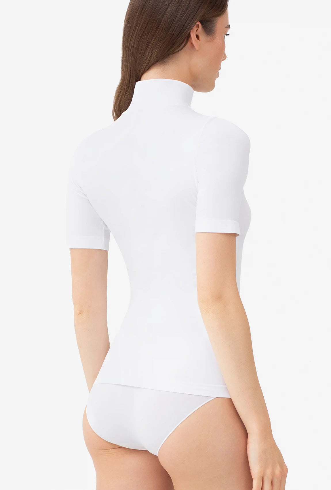 - Delikatna przędza użyta do wyprodukowania ponadczasowego i szykownego Golfu S zapewnia odpowiednią cyrkulację powietrza, pozwalając zachować optymalny komfort cieplny. Jednolita barwa, w kolorze czerni lub bieli, materiału daje możliwość kreowania stonowanych kompletów, jak i ekstrawaganckich zestawów.