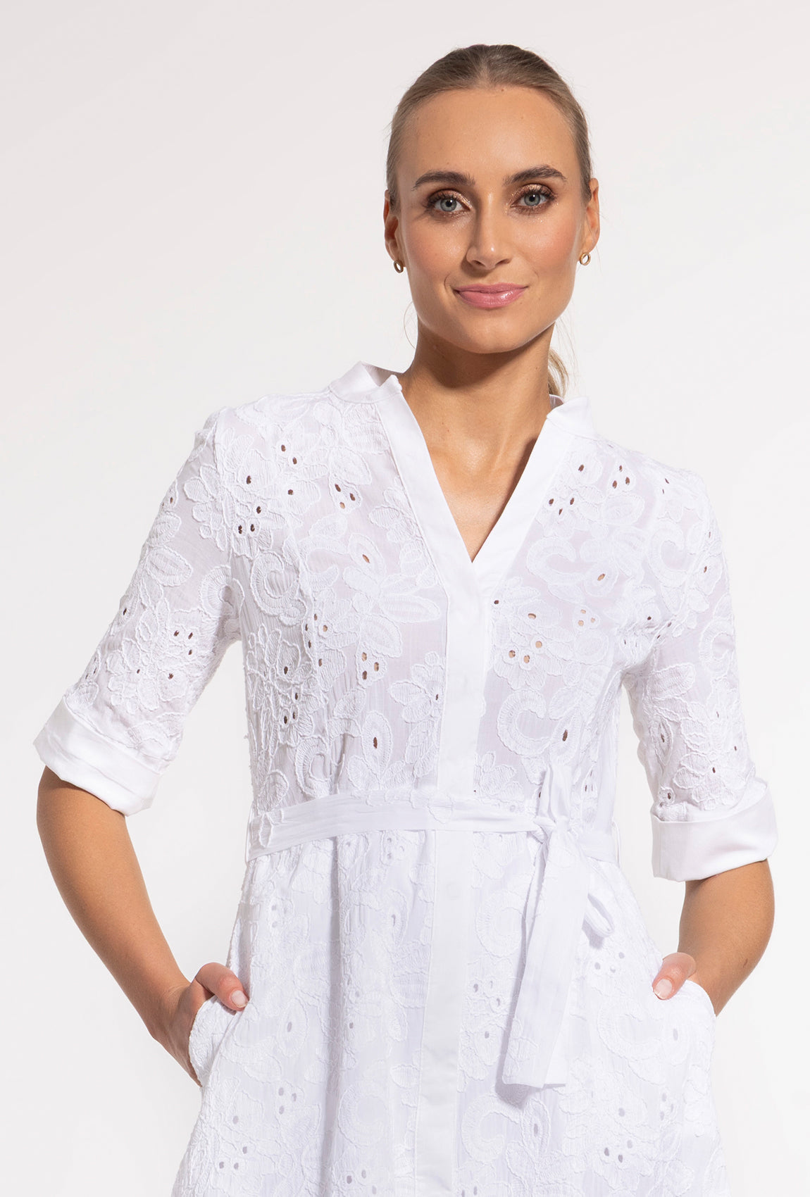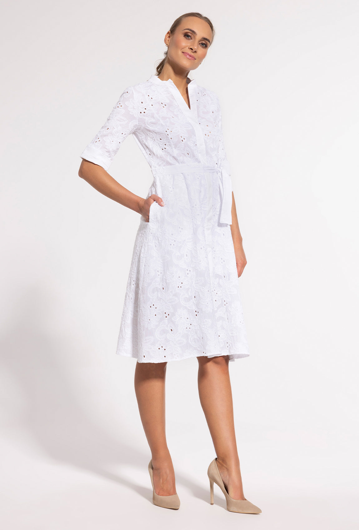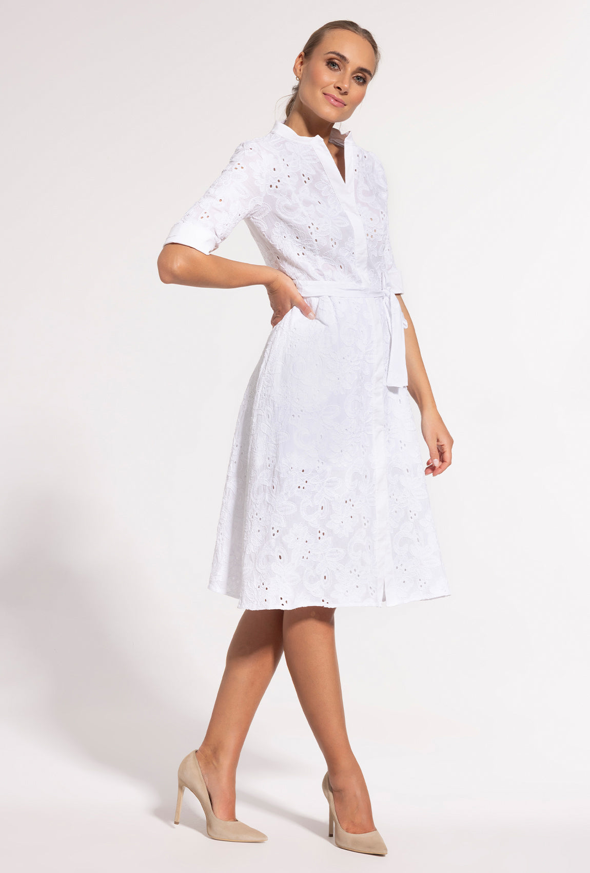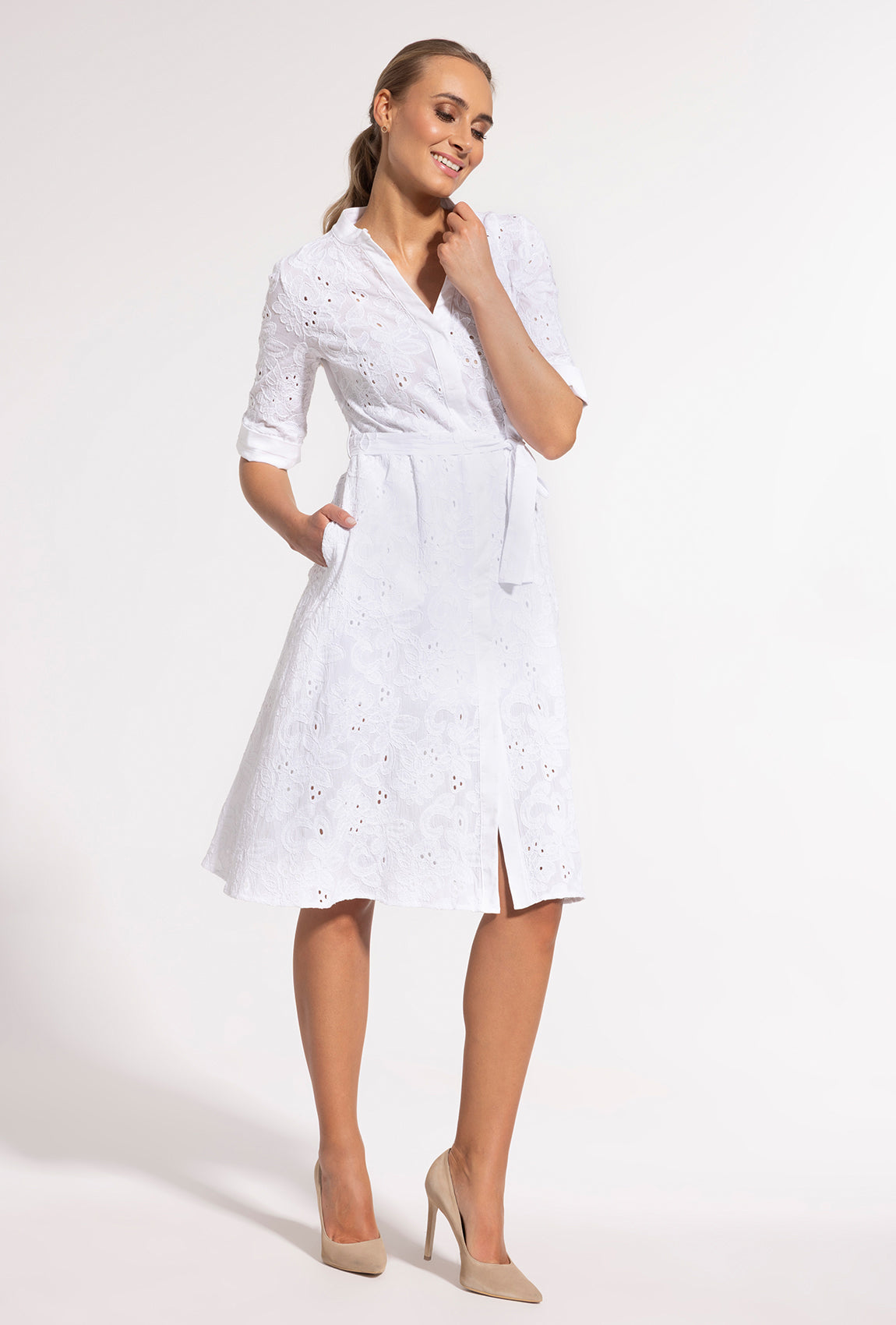 Biała sukienka koszulowa midi Sheila