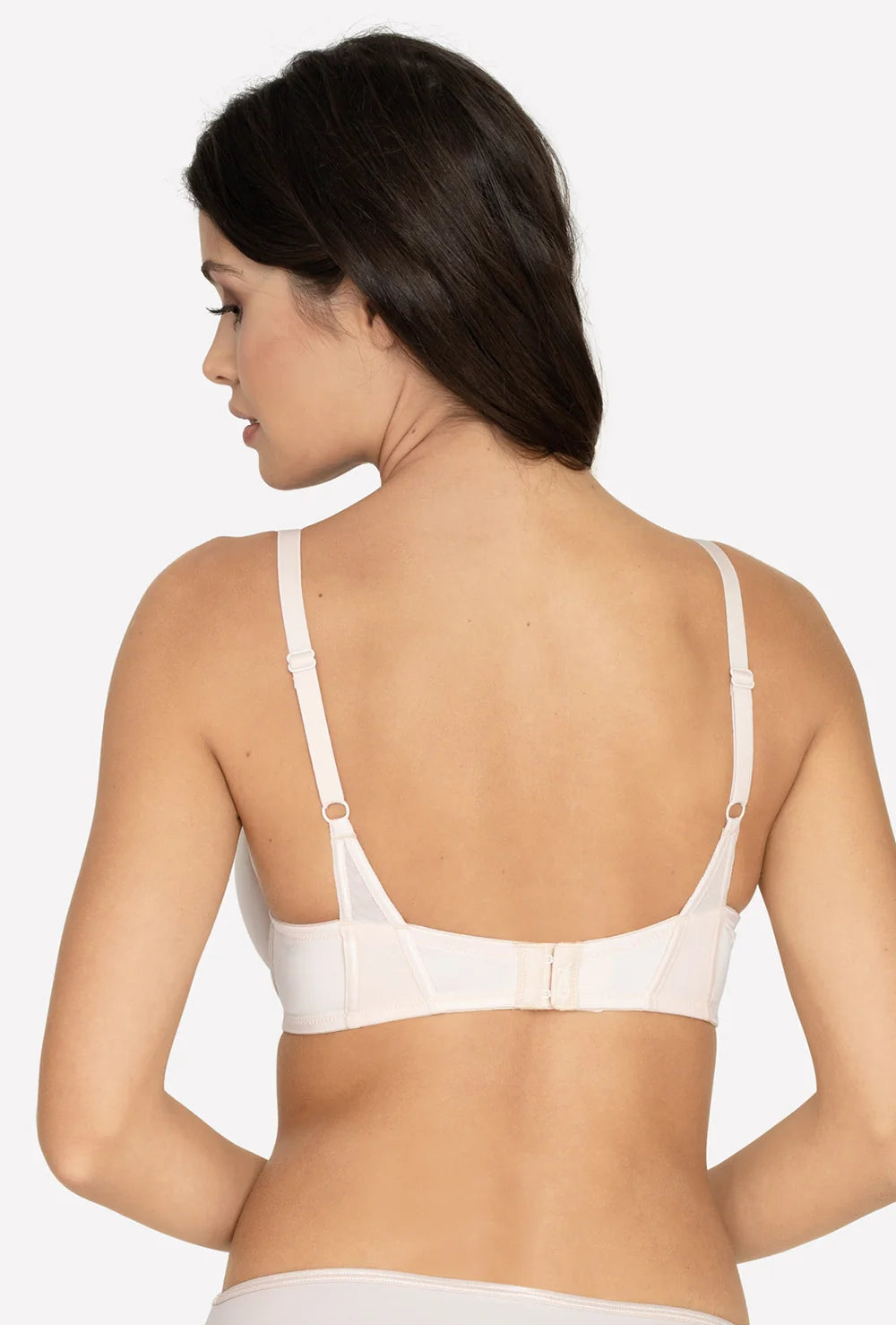 - Gładkie, termicznie formowane miseczki są niewidoczne pod ubraniem. Ich minimalistyczny i elegancki charakter dodatkowo podkreśla obłożenie delikatnie połyskującym materiałem.