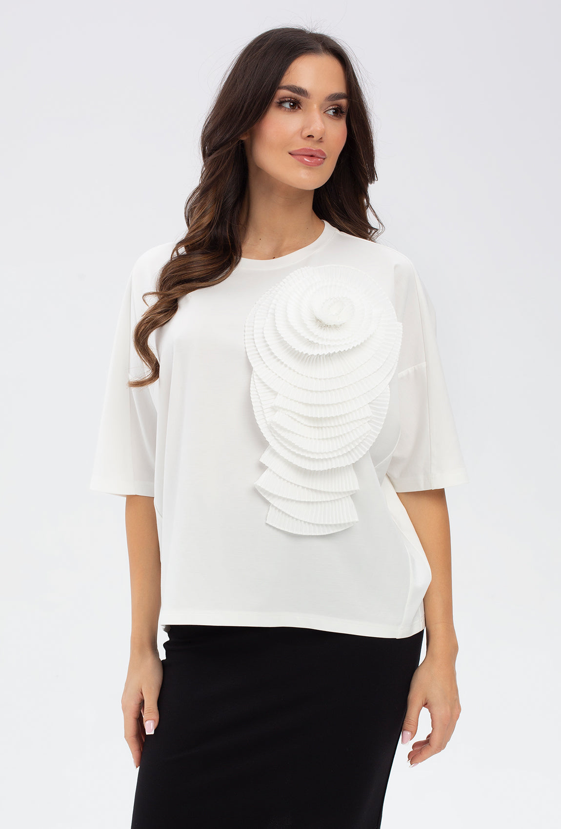Swobodna i komfortowa w noszeniu, a jednocześnie niezwykle wyrazista- bluzka Camelia z oferty Gatta od razu zwraca na siebie uwagę. Wszystko to za sprawą przestrzennej aplikacji inspirowanej kotylionami i kwiatami kamelii.