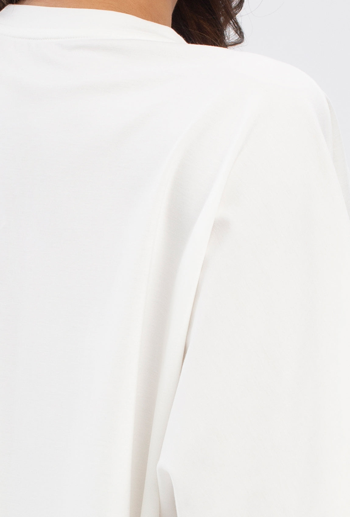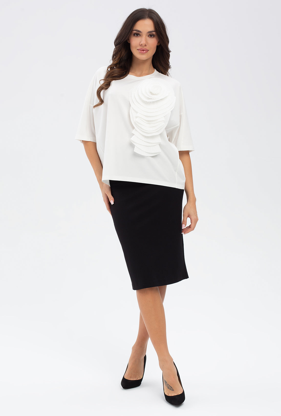 Bluzka damska Camelia to elegancka wersja luźnego t-shirtu. Można więc nosić ją zarówno do jeansów i sportowego obuwia, jak i do ołówkowej spódnicy o biurowym charakterze. W każdym z tych zestawień sprawdzi się równie dobrze, zapewniając swobodę ruchów. Jej luźny krój ciekawie współgra z wielkoformatową aplikacją.
