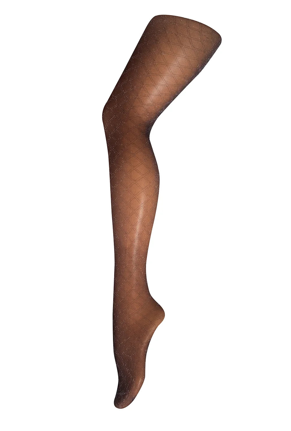 - Dostępne w kolorze czarnym z metalicznym połyskiem i wzorem w romby. Wyróżniają się wzorniczo a technologia produkcji rajstop wpływa na ich trwałość i wytrzymałość.