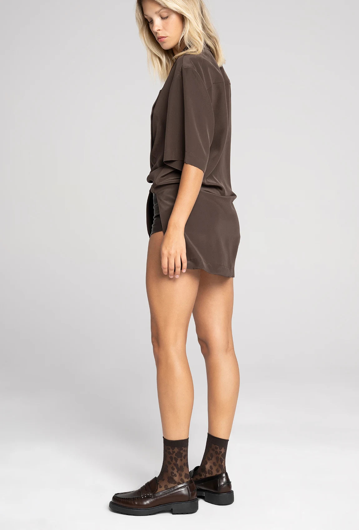 Cienkie skarpetki Bloom w odcieniu Mocha to tylko jeden z wielu elementów szerszej gamy produktów. Wzór inspirowany panterką i bratkami jest obecny również na skarpetkach w innych odcieniach, a także na podkolanówkach, rajstopach, a nawet na bezszwowej sukience. Zobacz całą kolekcję Poem by Zień x Gatta!