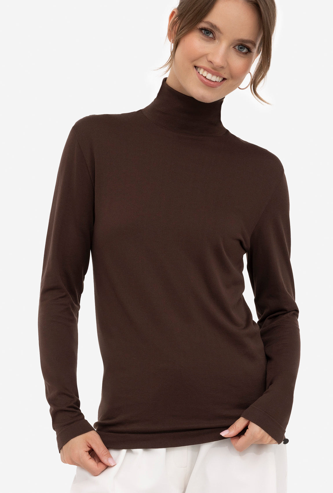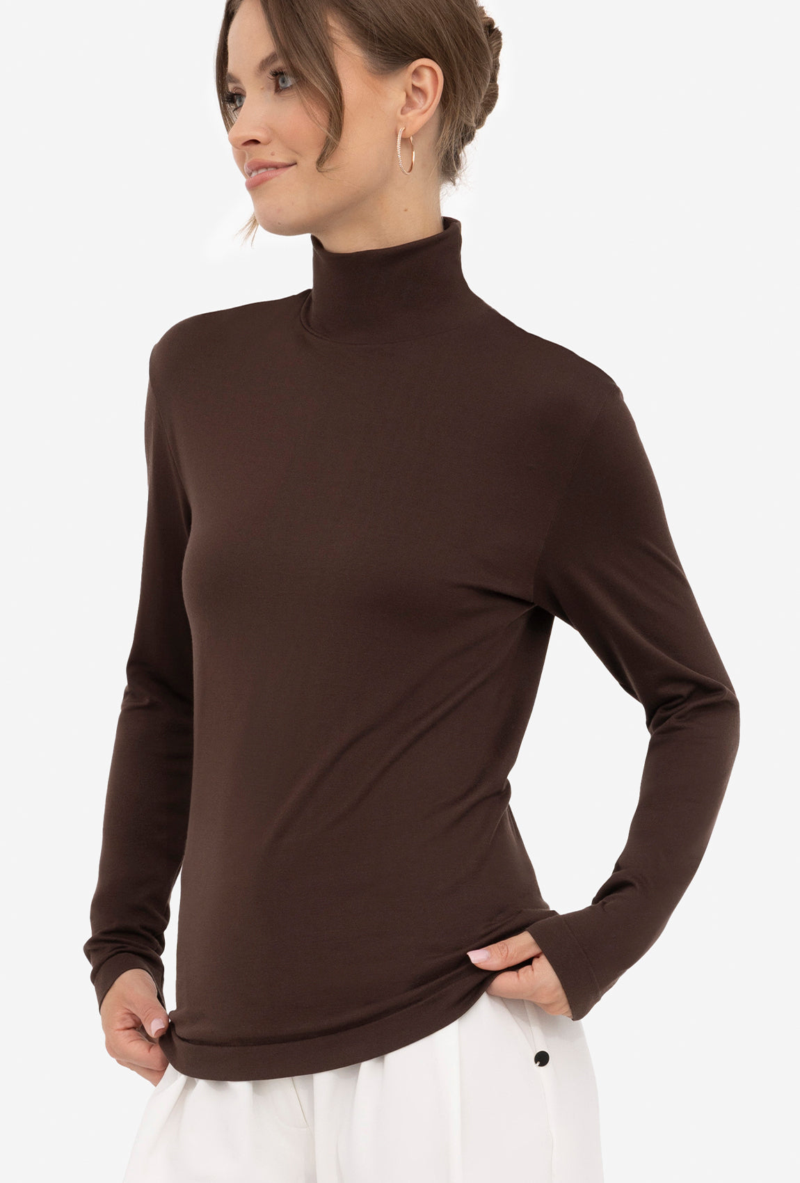 Brązowy golf Chiara w kolorze Coffee Bean 2 to klasyczny, gładki model o ciepłym tonie. Miękka, elastyczna dzianina i dopasowany krój sprawiają, że to idealny wybór na co dzień i do eleganckich stylizacji.