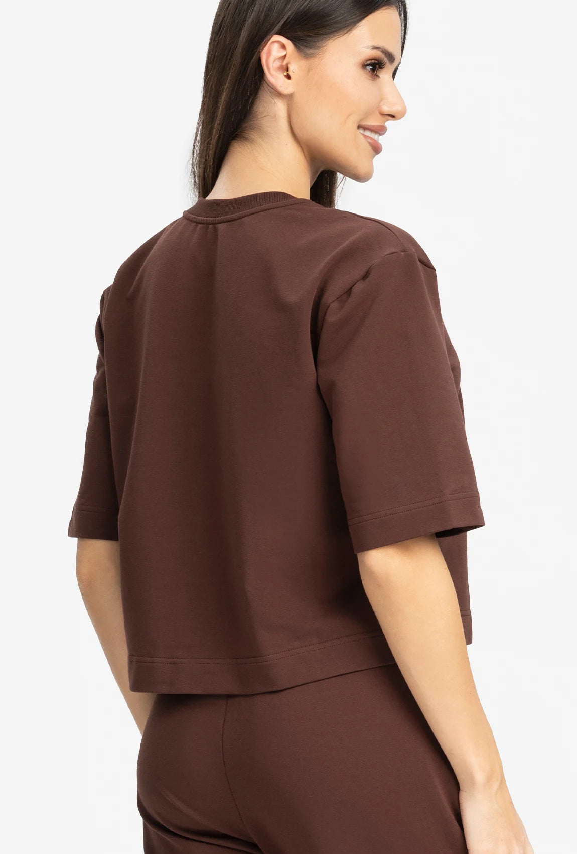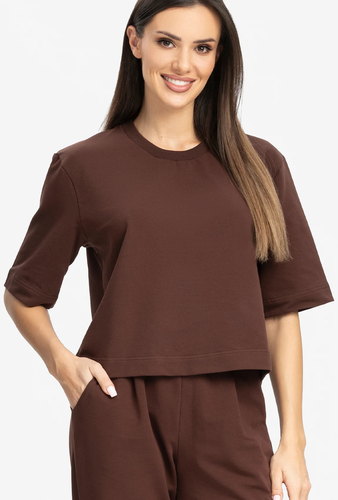 Brązowy T-shirt Malaga 02 - swobodny fason w ciepłym odcieniu choco