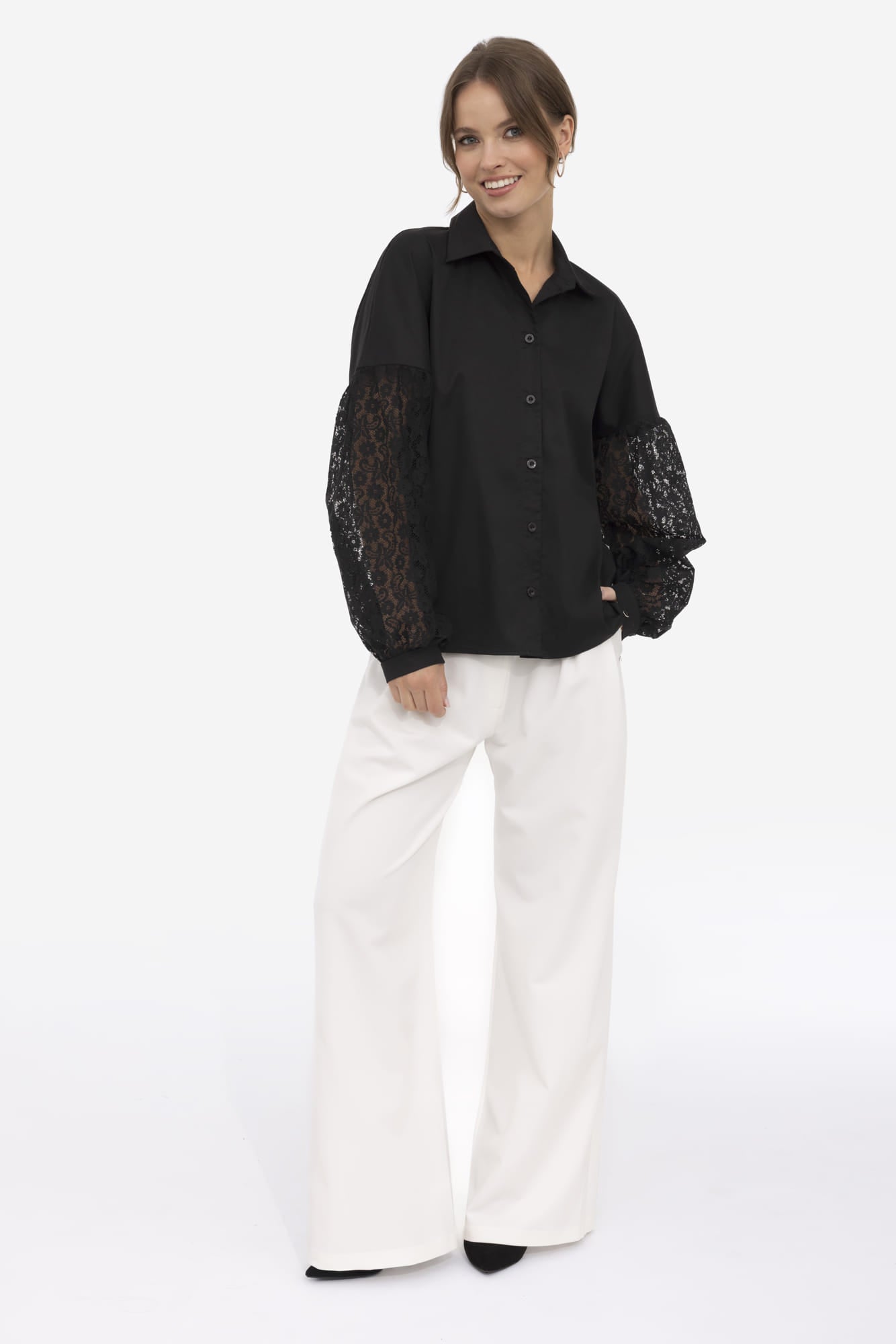 Elegancka koszula Alfi z koronkowymi rękawami – styl i wygoda w jednym