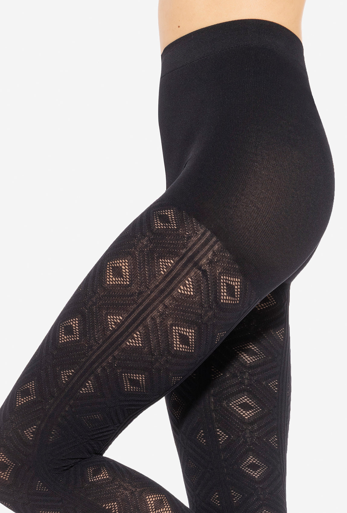 - czarne rajstopy z geometrycznym wzorem 80 DEN,