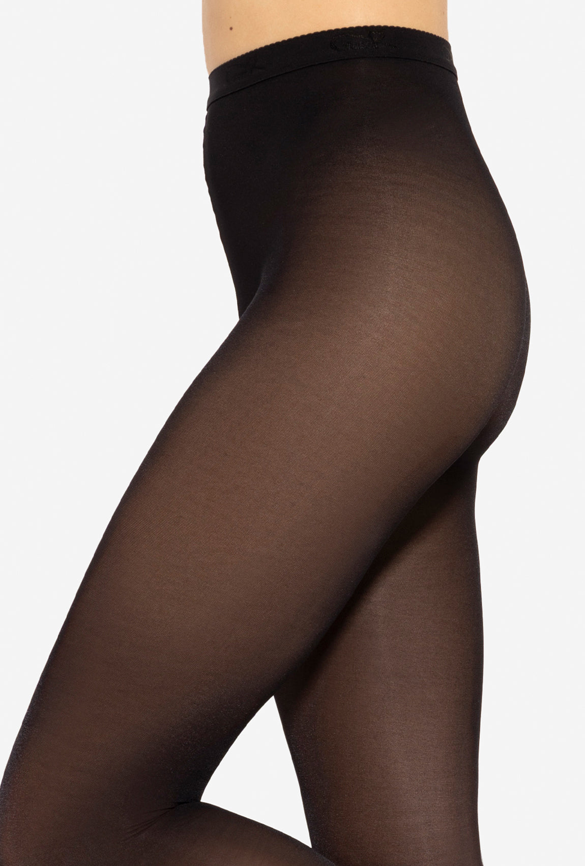 Czarne rajstopy Iluminate to model, który łączy klasykę z nowoczesnym błyskiem. Kryjąca tkanina i eleganckie wykończenie czynią je idealnym wyborem zarówno na codzienne stylizacje, jak i wyjątkowe okazje.