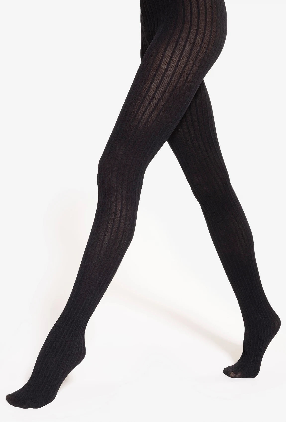 Rajstopy Tiffany 25 w kolorze czarnym to niezbędny element kobiecej garderoby. Doskonale wyglądają w połączeniu z wełnianą sukienką, ołówkową spódnicą czy dłuższym swetrem. Ich subtelny prążkowany wzór nadaje stylizacjom głębi i elegancji, nie odbierając im klasycznej prostoty.