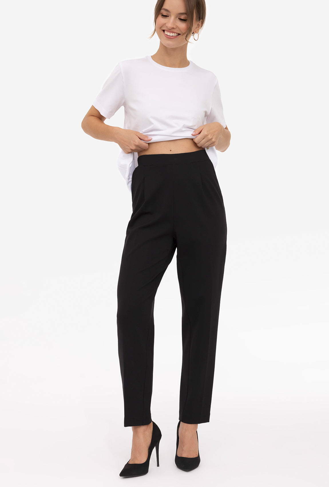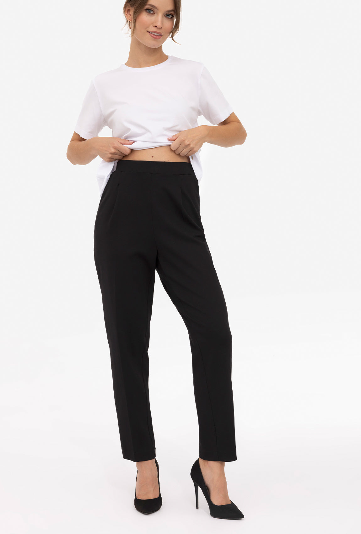 Czarne spodnie są jak mała czarna – warto mieć je w swojej garderobie, ponieważ można wykorzystać je niemal w każdej stylizacji. W połączeniu z jasnym topem, bluzką lub koszulą stworzą set o lekko formalnym charakterze. Spodnie Bergamo mają jednak o wiele więcej zalet: są wygodne w noszeniu dzięki elastycznej talii, a ich krój sprawdzi się na każdej sylwetce. Nogawki z kantem nie tylko świetnie współgrają z elegancką estetyką, ale też optycznie wysmuklają i wydłużają nogi.