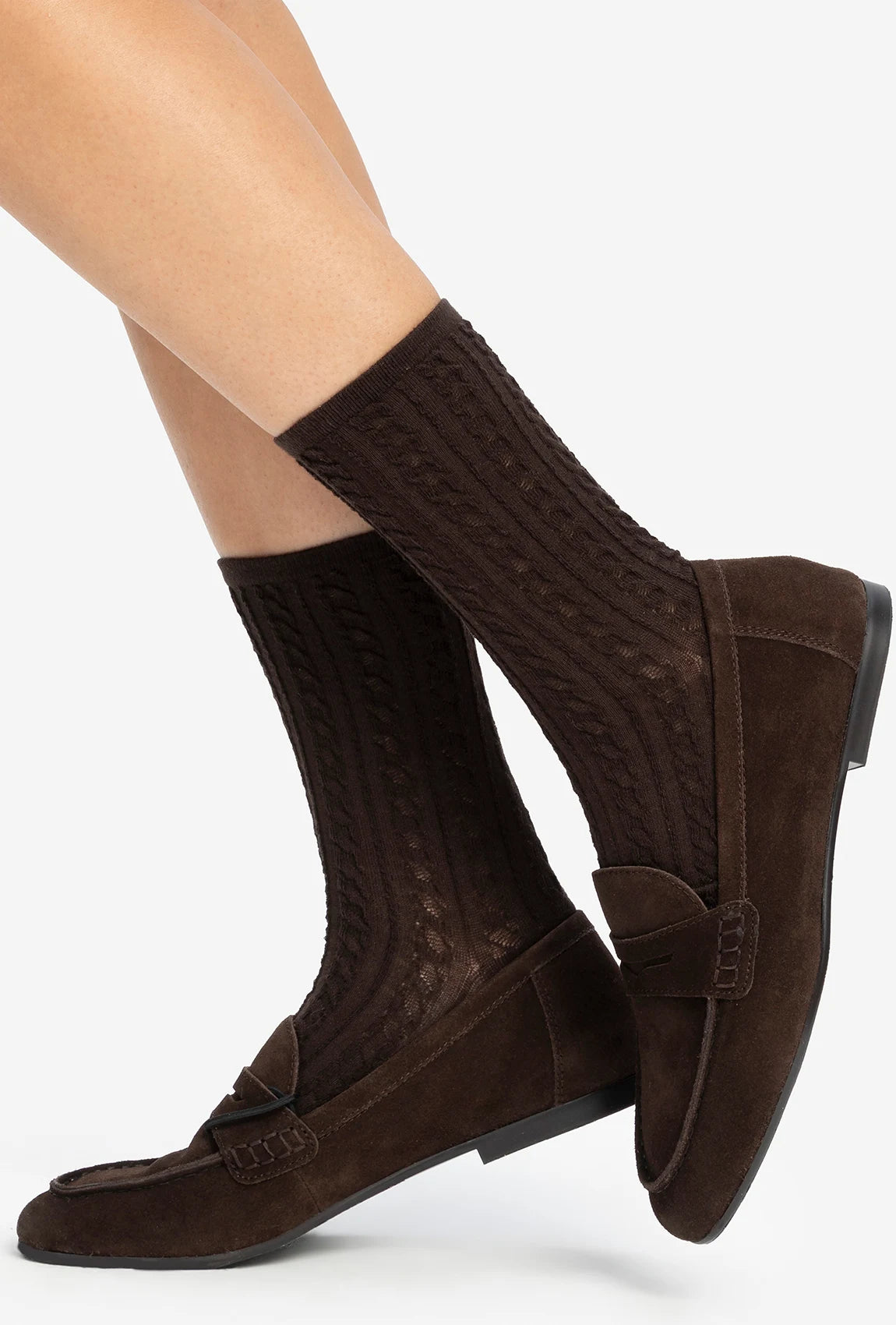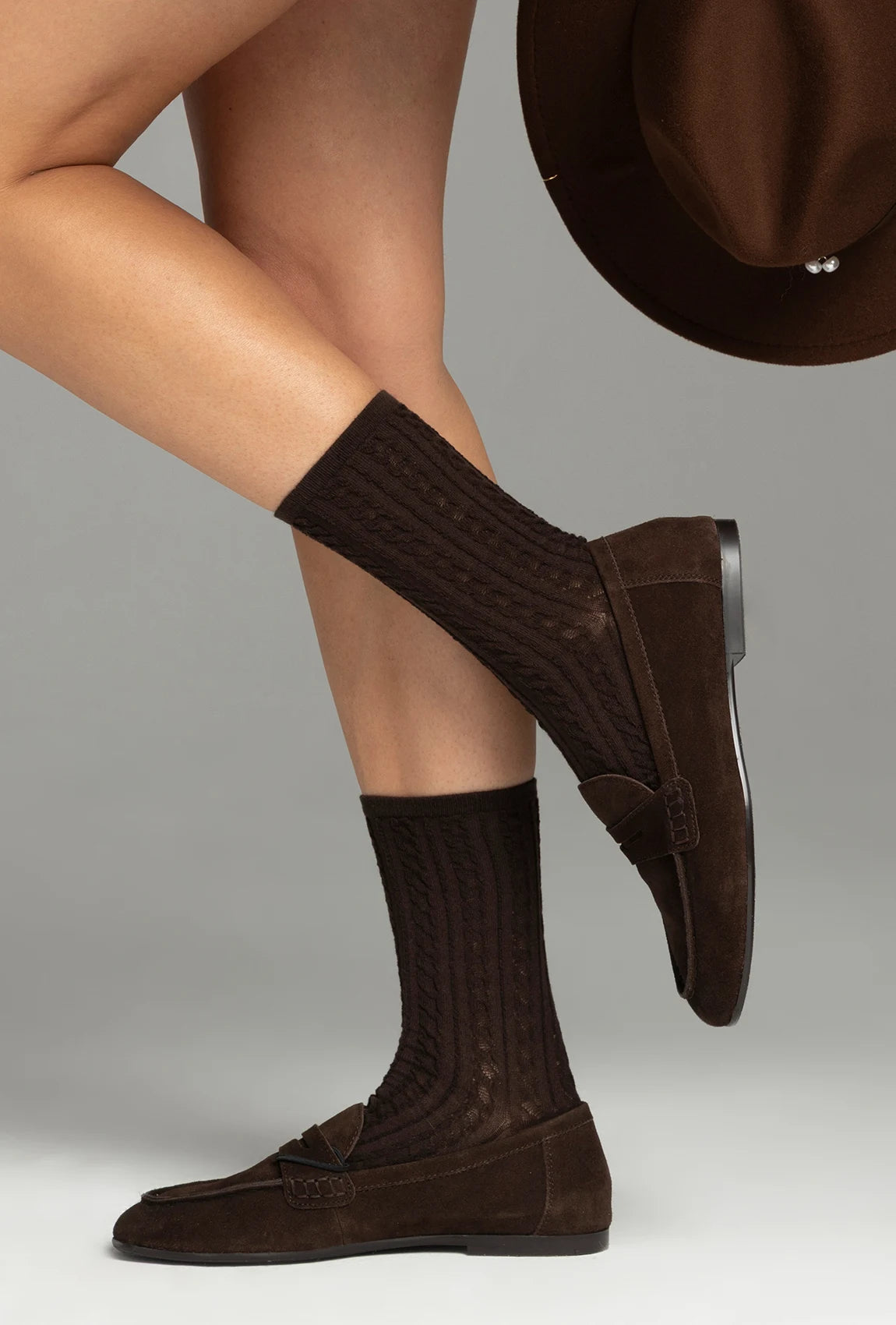 Czekoladowe skarpetki świetnie uzupełnią stylizacje z botkami, loafersami czy sneakersami. Doskonale sprawdzą się również jako przytulny akcent do domowego outfitu lub jako oryginalny dodatek do jesienno-zimowych zestawów.