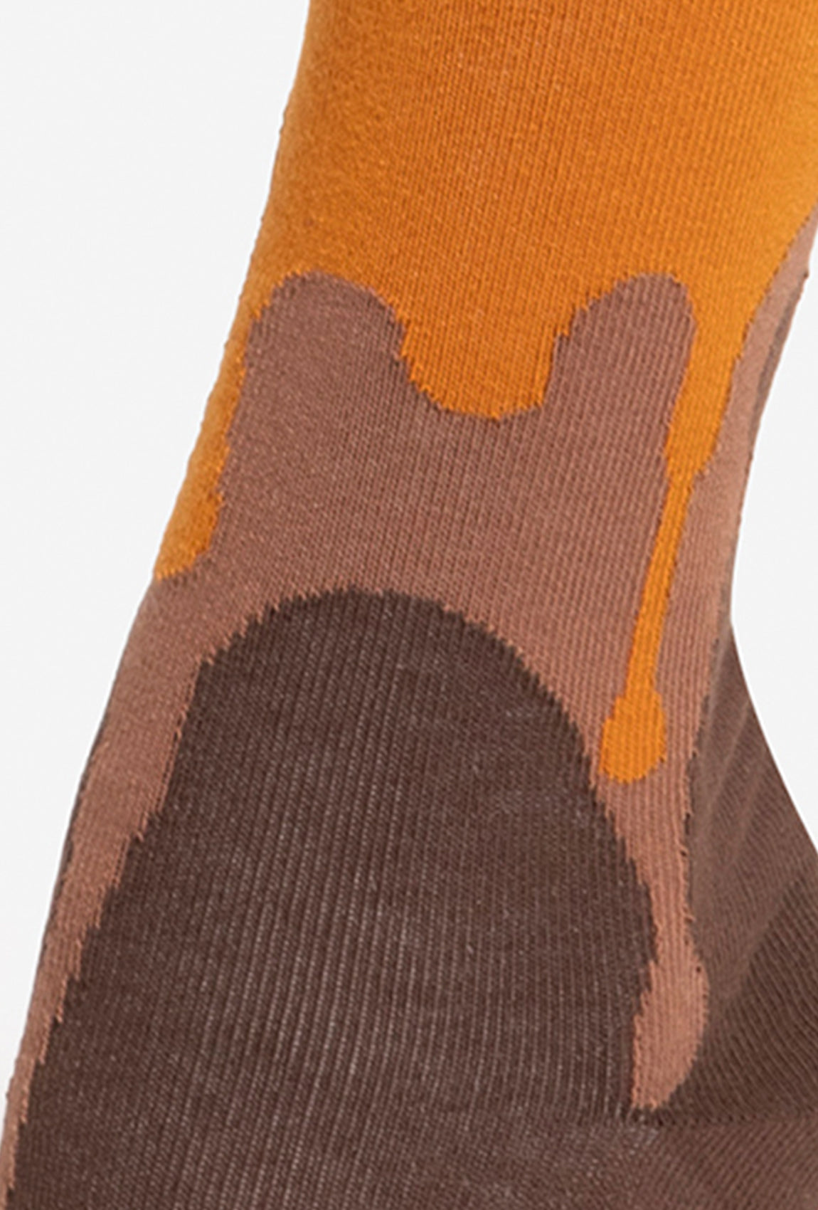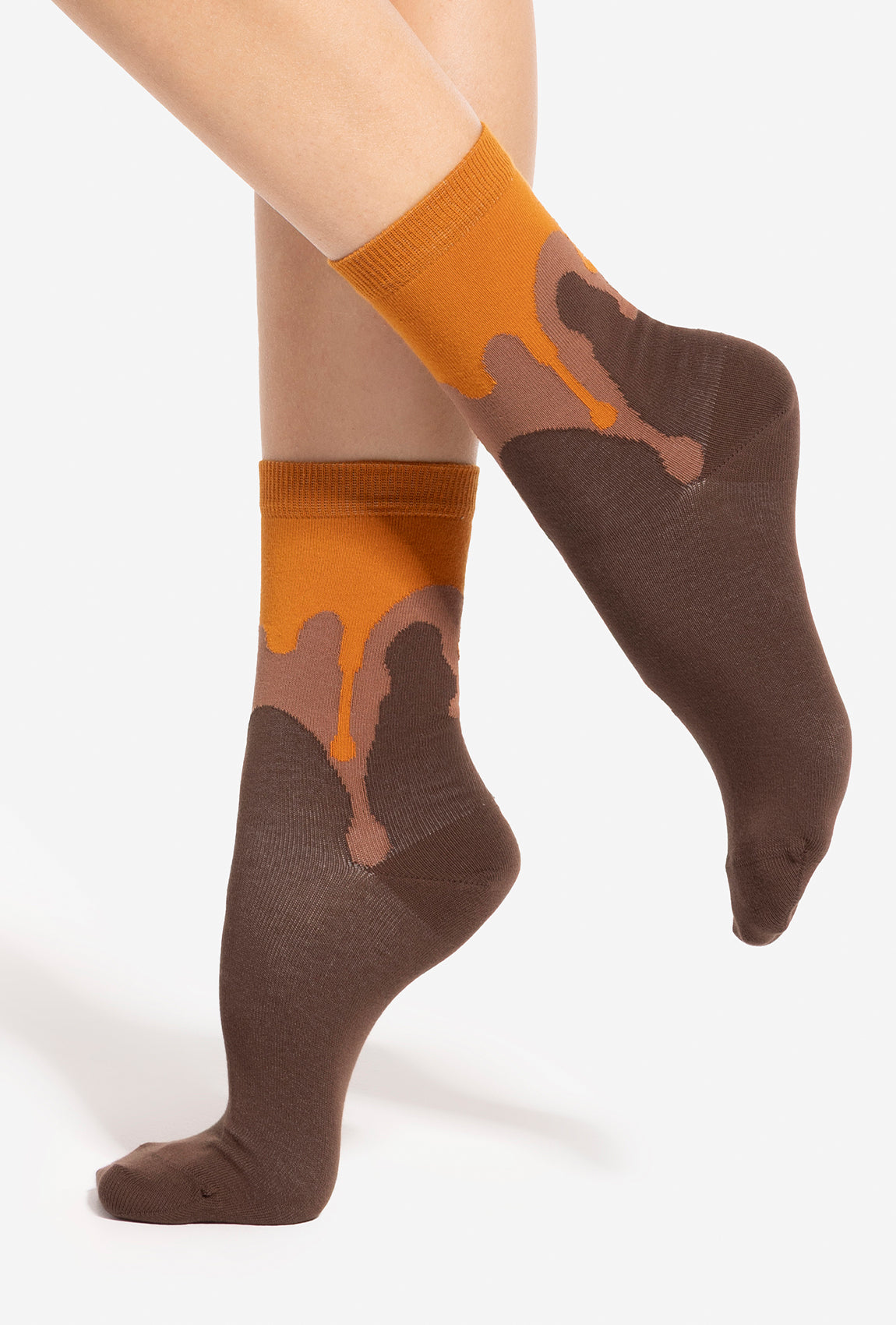 Czekoladowe skarpetki z kolekcji Gatta x Wedel to propozycja, która łączy prostotę, komfort i wyjątkowy design. Odcień Dark Choco to nowoczesna alternatywa dla klasycznych, neutralnych kolorów - subtelny, ale wyrazisty. Dzięki elastycznemu materiałowi skarpetki idealnie przylegają do stopy, nie uciskając, a jednocześnie zachowując swój kształt przez cały dzień.
