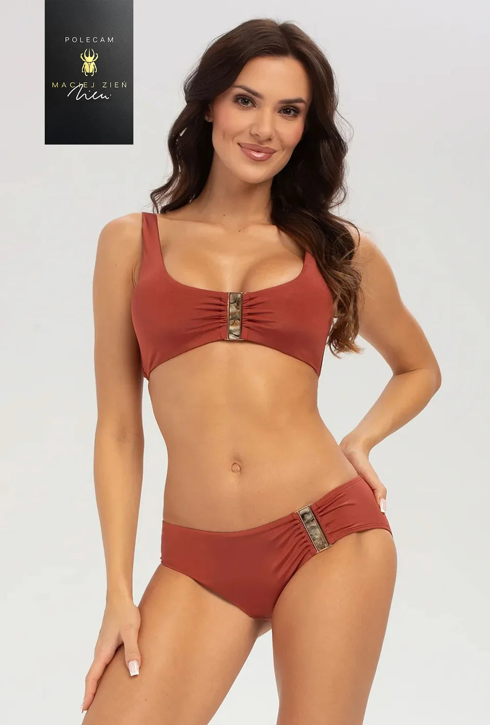 Dół od kostiumu kąpielowego Amber zachwyca bursztynową kolorystyką oraz klasycznym fasonem, który urozmaicono złotym detalem. To idealna plażowa propozycja od marki Gatta, która wpada w oko i jest niezwykle wygodna w noszeniu.