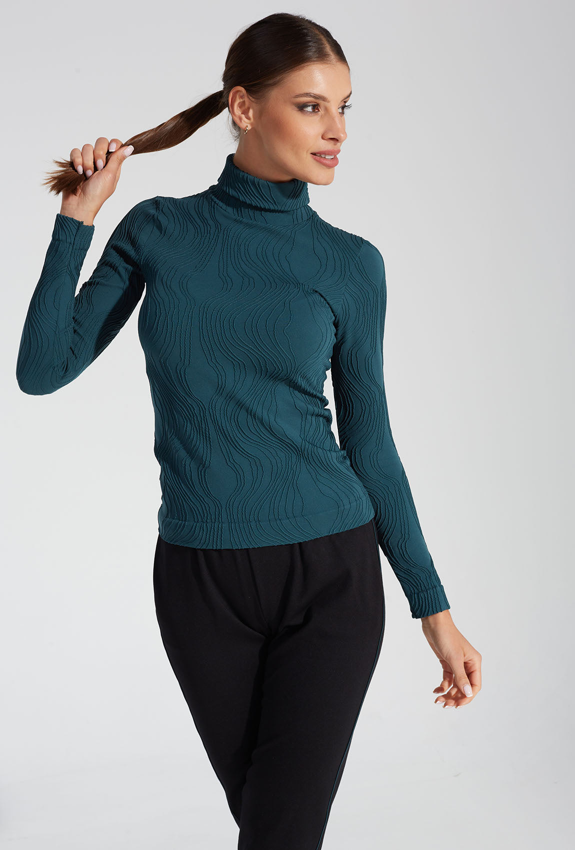 Damski golf Flow wykonano z mieszanki poliamidu i elastanu. Materiał ten jest więc zarówno miły w dotyku, jak i elastyczny. Możesz mieć pewność, że ubranie to perfekcyjnie dopasuje się do Twojej sylwetki.