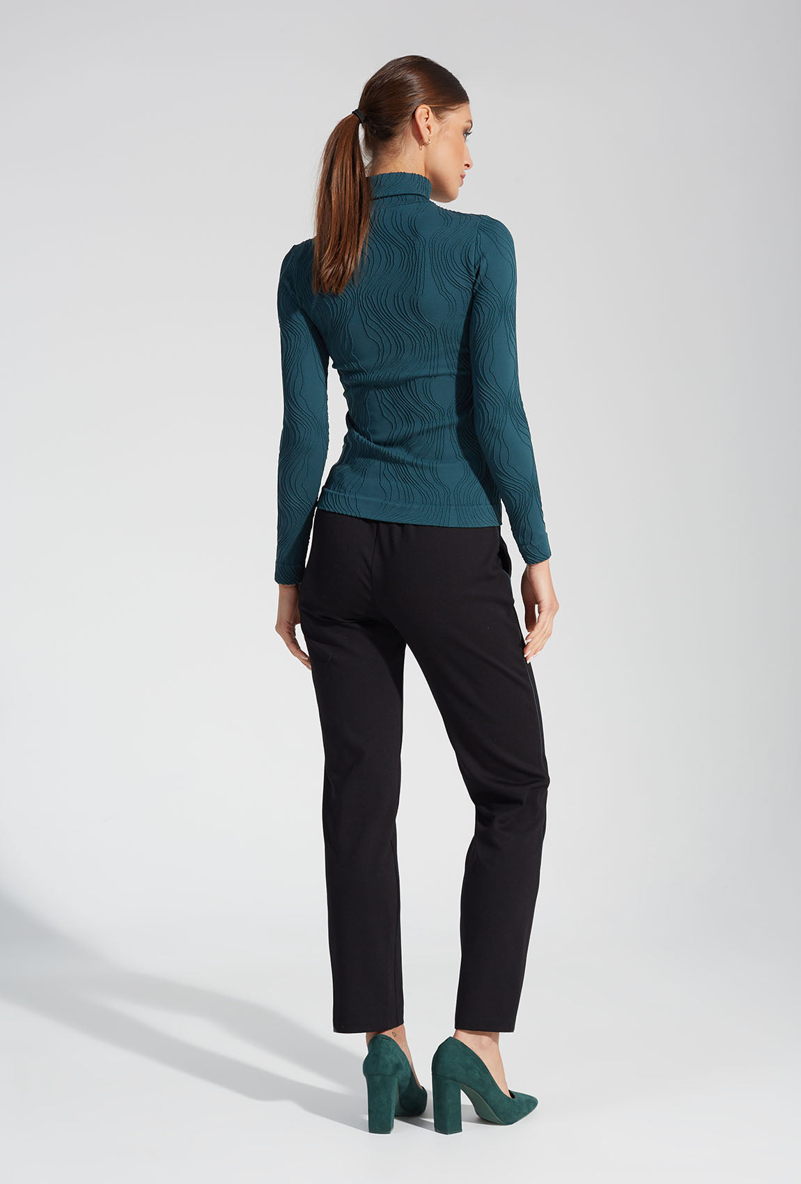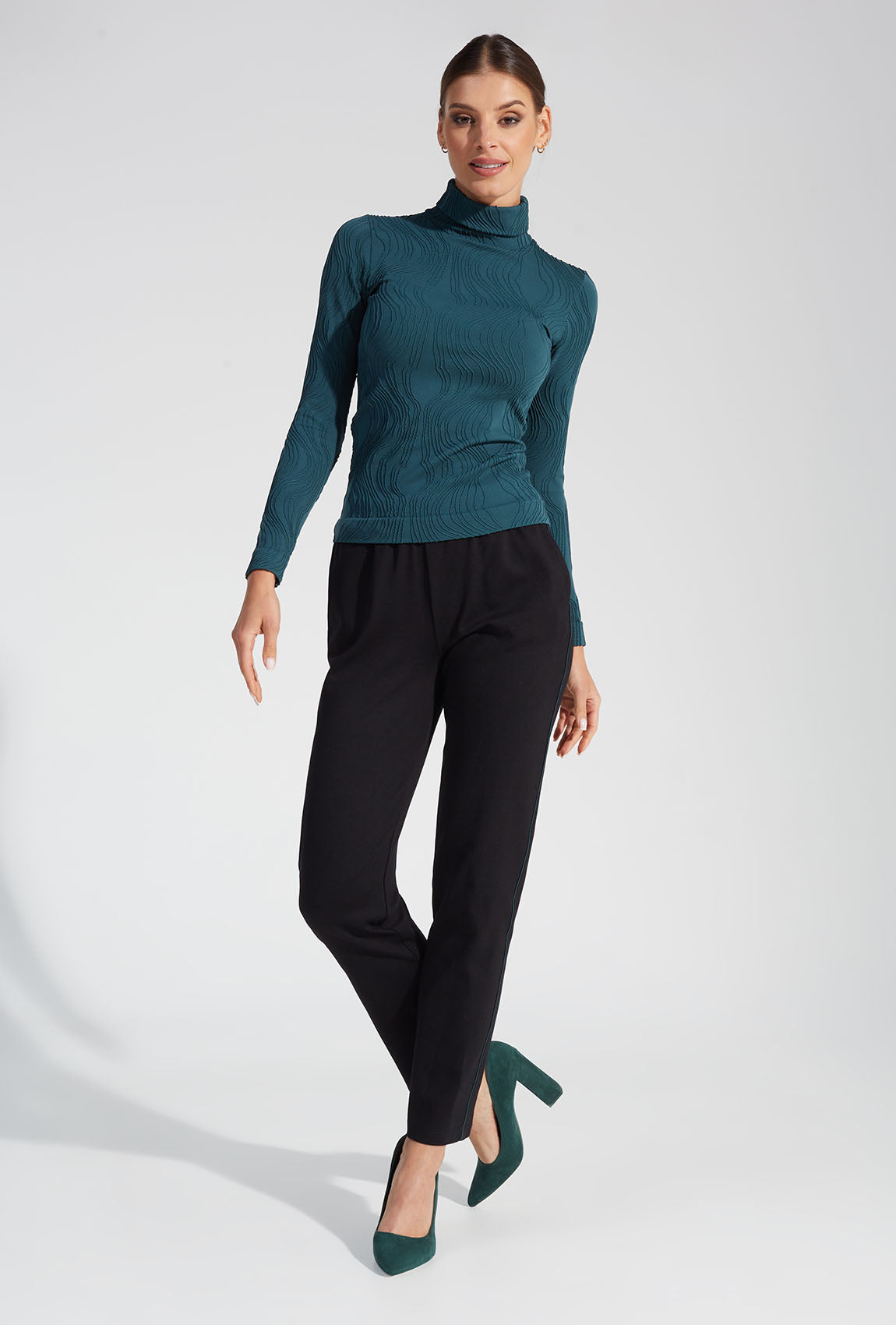 Dopasowany golf damski Flow marki Gatta powstał z myślą o kobietach, które cenią elegancję i wygodę. Jest to ubranie, które łączy w sobie casualowy komfort noszenia z efektownym wzornictwem. Przyjrzyj się bliżej, by dostrzec, jak ozdobne są przeszycia, którymi wykończono damski golf Flow. Dodają mu efektu trójwymiarowości i przykuwają spojrzenie.