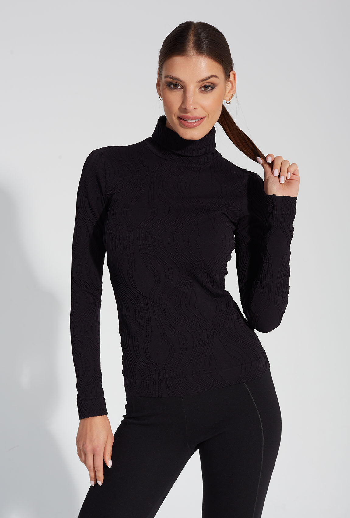 Damski golf Flow wykonano z mieszanki poliamidu i elastanu. Materiał ten jest więc zarówno miły w dotyku, jak i elastyczny. Możesz mieć pewność, że ubranie to perfekcyjnie dopasuje się do Twojej sylwetki.