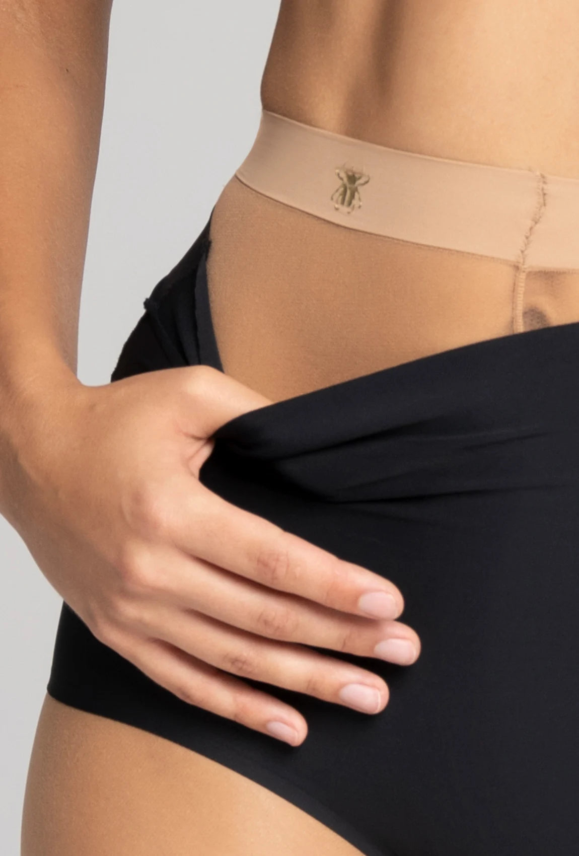 Cienkie beżowe rajstopy pasują niemal do każdej sukienki lub spódnicy – różnica pomiędzy modelami tkwi jednak w szczegółach. Rajstopy Scarab Fortissima na pierwszy rzut oka wyglądają dość klasycznie, ale ich mocną stroną jest zachwycająca elastyczność oraz drobny detal dekoracyjny – złoty skarabeusz ulokowany w pasie – znak rozpoznawczy projektanta.