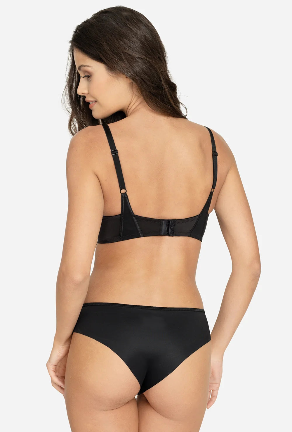 - Majtki dostępne są w dwóch ponadczasowych kolorach: beżowym oraz czarnym, i tworzą perfekcyjny komplet w parze z biustonoszem Lisa.