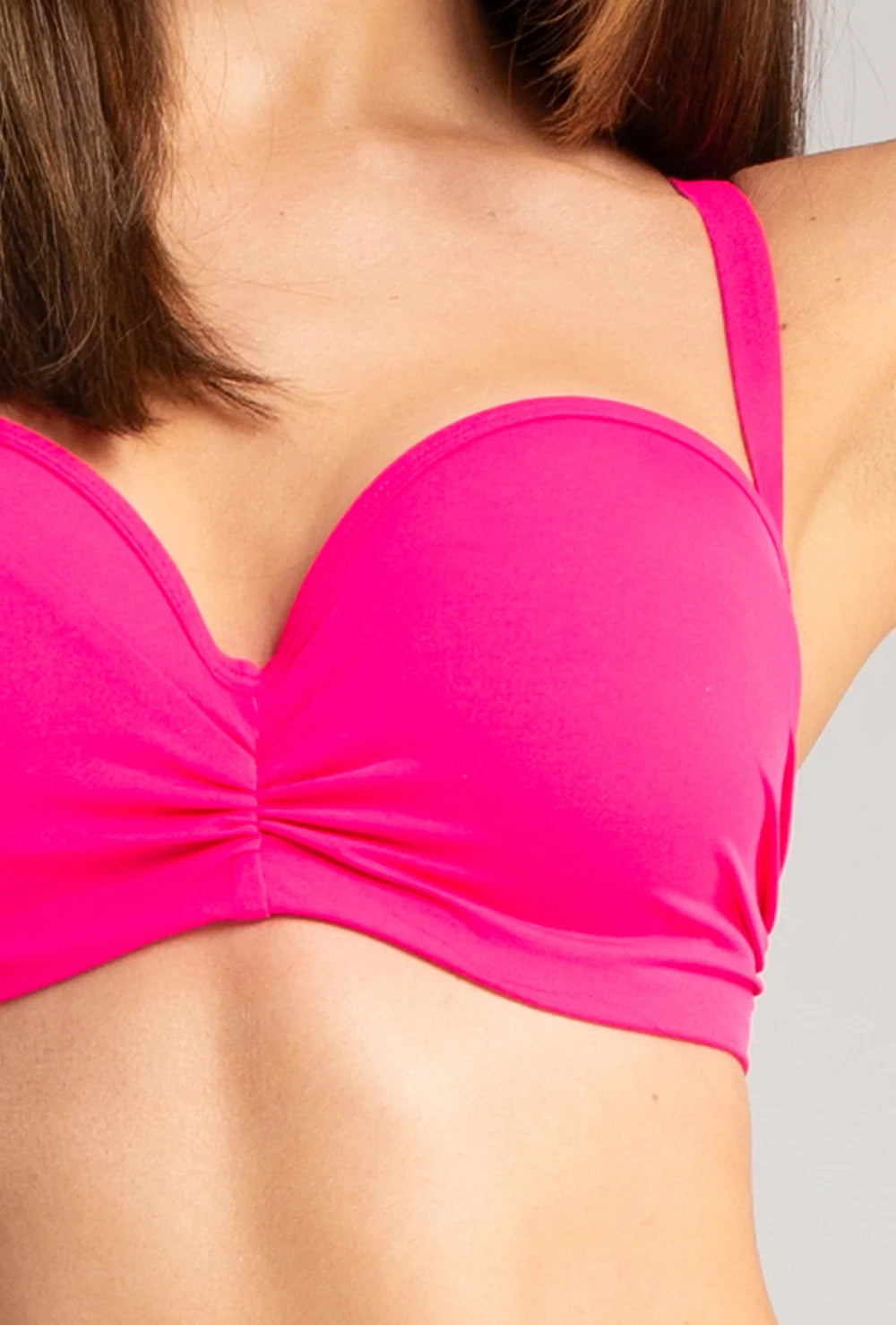 Góra od stroju kąpielowego Sky od razu wpada w oko. Jest minimalistyczna i dość klasyczna - świetnie podtrzymuje biust i delikatnie go unosi. Wszystko to za sprawą fiszbin oraz lekkiego usztywnienia miseczek. To biustonosz kąpielowy, który jest oferowany w bardzo szerokiej gamie rozmiarów do wyboru. Zerknij na dostępne opcje i wybierz najkorzystniejszą z nich!