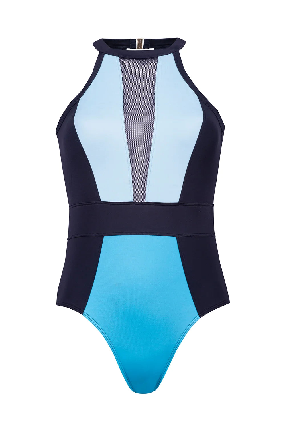 Geometryczne połączenie różnych materiałów, tworzy na kostiumie Lagoon niezwykle nowoczesny wzór, który wpisuje się w światowe trendy mody plażowej. Projektując go postawiliśmy na najmodniejszy w tym sezonie energetyczny kolor turkusu, który wyeksponuje letnią opaleniznę. Czarne wstawki z boku stroju oraz w pasie zjawiskowo wysmuklą sylwetkę, a pionowy panel z siateczki z przodu dyskretnie wyeksponuje głęboki dekolt. Eleganckie złote zapięcie na szyi jest elementem niemal biżuteryjnym. Z tyłu kostium Lagoon posiada delikatne wycięcie na plecach, co dodaje mu lekkości.