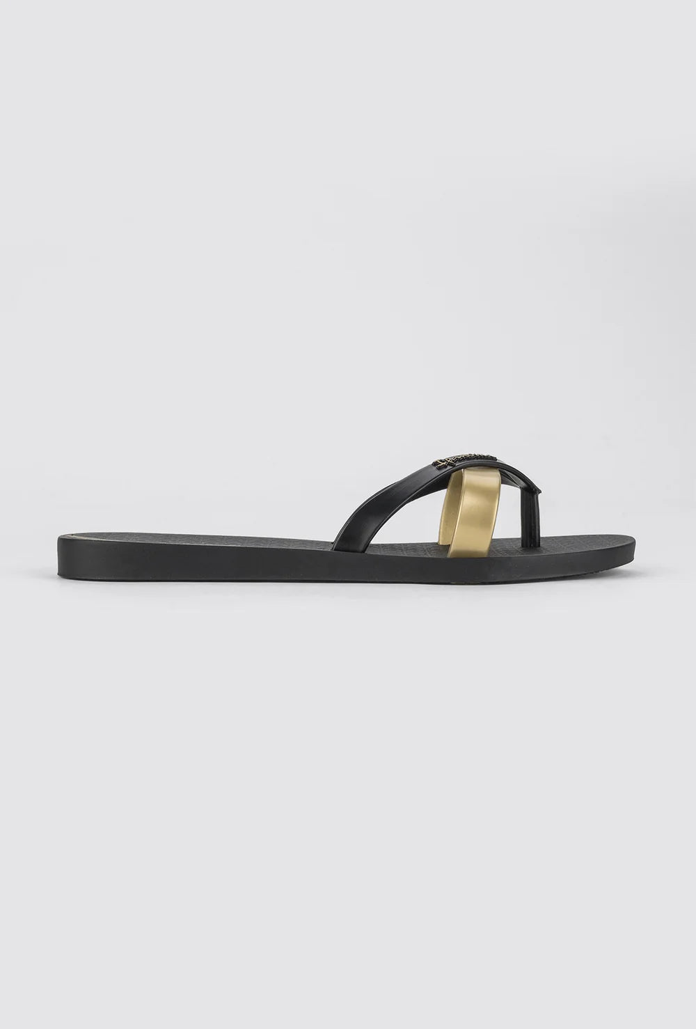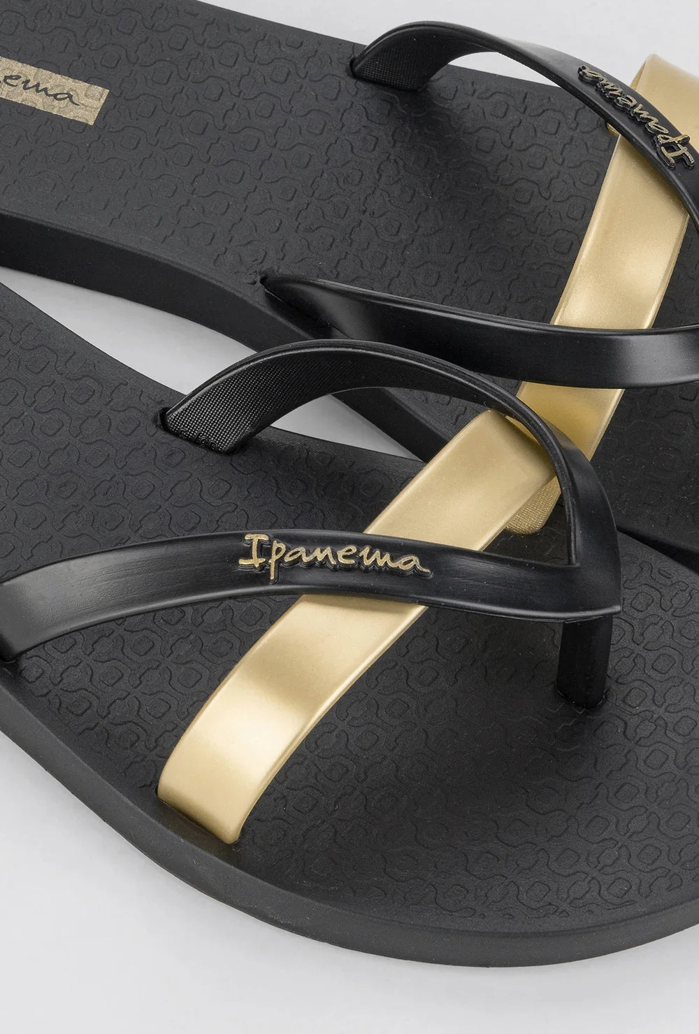 Jeśli lubisz buty w neutralnych i eleganckich kolorach, postaw na czarne klapki Ipanema ze złotymi wstawkami. To klapki o lekko zmodyfikowanym fasonie japonek, które łączą w sobie wygodę noszenia, nienaganną estetykę oraz lekkość. Obuwie tego typu idealnie sprawdzi się w typowo letnich stylizacjach z sukienkami, spódnicami i szortami. Możesz nosić je na co dzień, jak również zabierać ze sobą na wczasy - szczególnie wówczas, gdy w Twoich planach widnieje plażowanie. Klapki Ipanema będą bowiem doskonałym uzupełnieniem plażowego stroju.