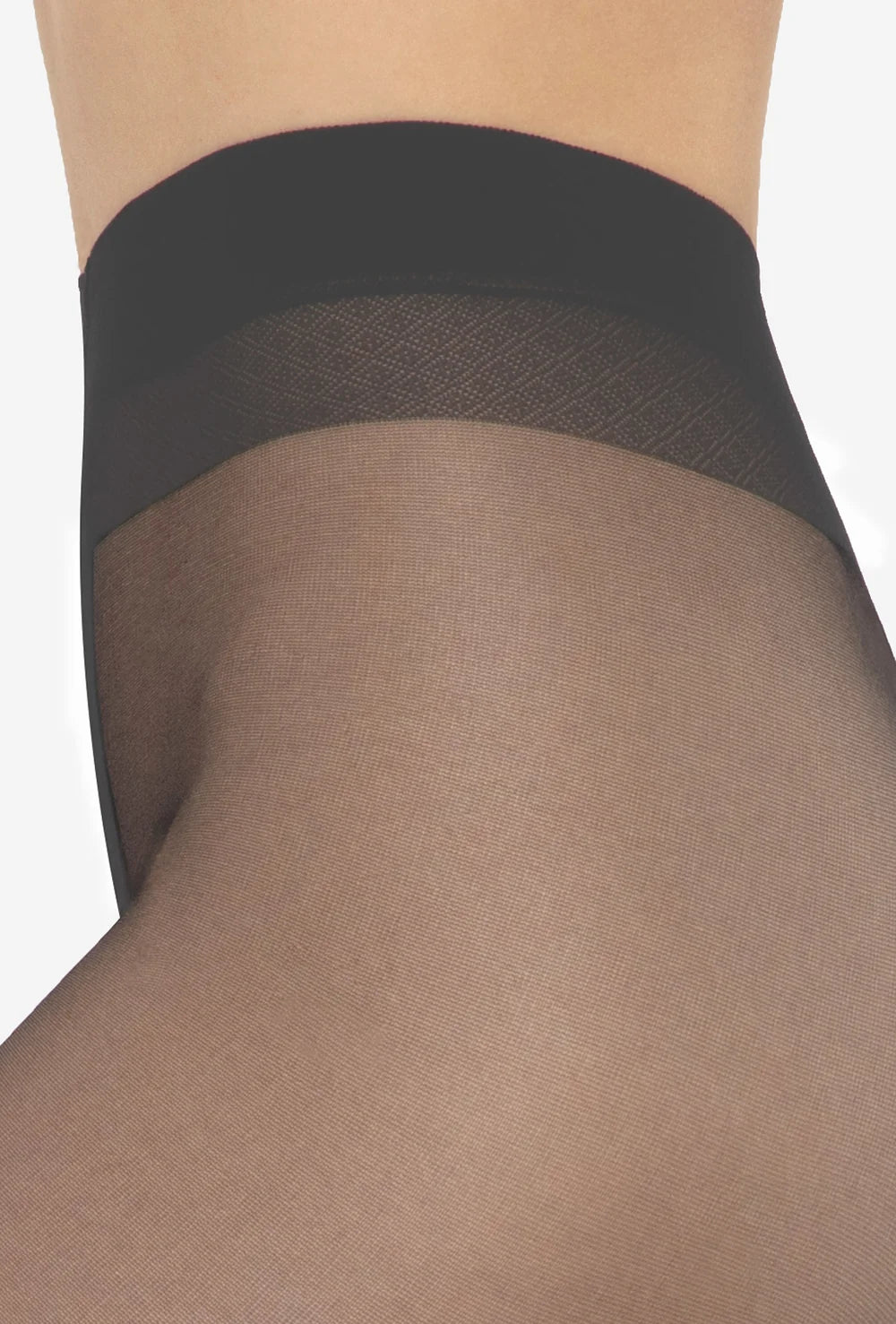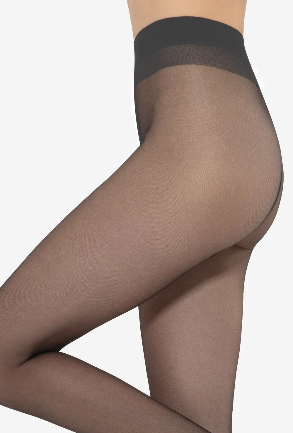 - Ponadczasowy model klasycznych rajstop dostępny jest w grubości 15 DEN, zapewniającej równomierne i delikatne krycie. Dodatkowym atutem nowych, wyjściowych rajstop, jest wykończenie pozbawione akcentu w części palcowej, dzięki czemu model pasuje do obuwia z odkrytym wierzchem stopy.