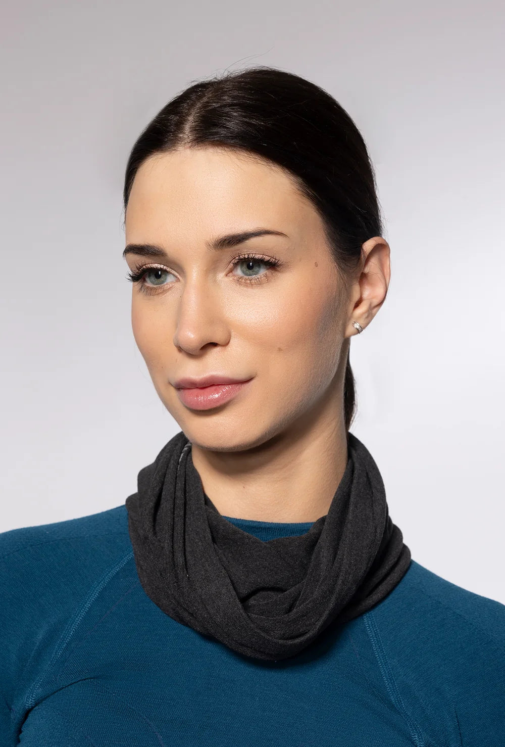 Komin termoaktywny Scarf zaprojektowaliśmy w melanżowym odcieniu szarości. Dzięki dostępności w rozmiarze uniwersalnym produkt dopasuje się zarówno do damskiego, jak i męskiego ciała.