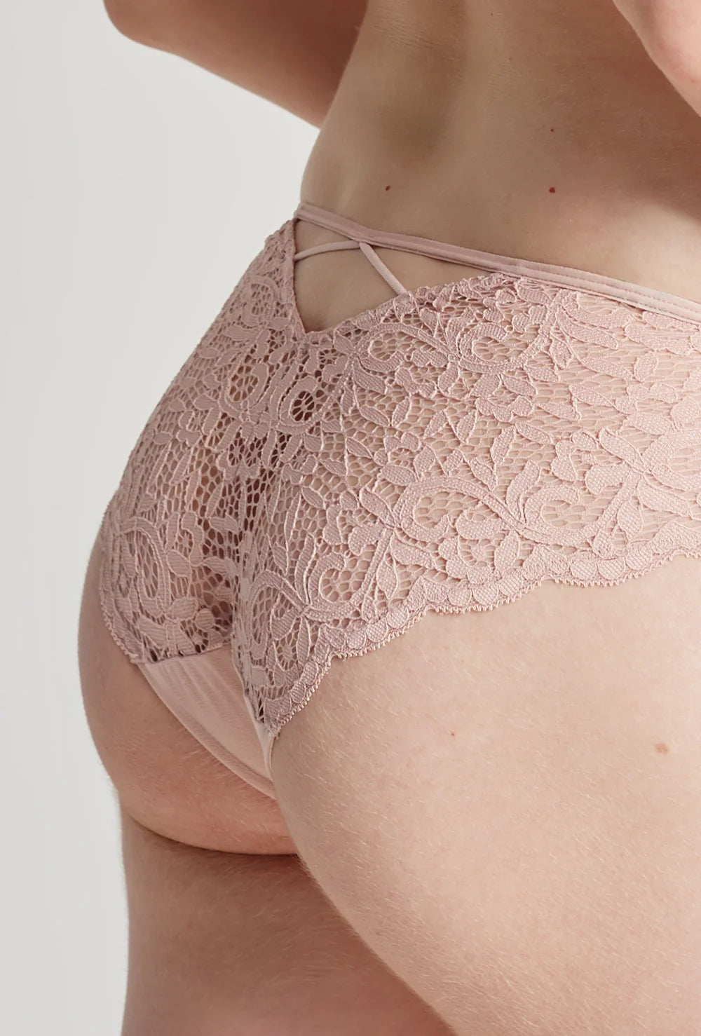 Jeśli należysz do grona zwolenniczek ażurowych haftów, to koronkowe majtki bikini Nicole z pewnością skradną Twoje serce. Ten model w kolorze pudrowego różu to absolutna nowość w kolekcji bielizny damskiej Gatta Intimate. Nasze majtki posiadają klasyczny fason, który jednocześnie zakrywa pośladki, jak i podkreśla ich kształt. To, co wyróżnia je spośród innych modeli to materiał, ponieważ majtki wykonano w całości z kwiatowej koronki. Zmysłowości dodaje im natomiast drobne wycięcie w okolicach lędźwi. W sklepie online Gatta znajdziesz je w rozmiarach od S do XL.