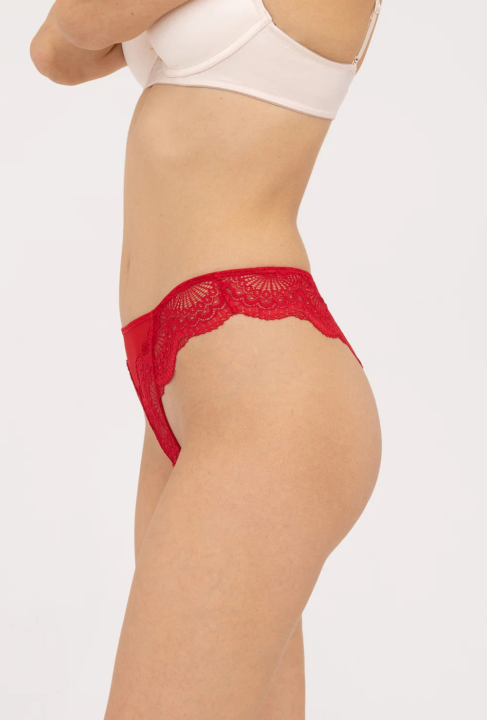 Mowa o koronkowych majtkach stringach Margot z najnowszej kolekcji bielizny damskiej Gatta Intimate. Ten model prawie w całości wykonano z ażurowej koronki, która sprawia, że stringi nabierają bardzo zmysłowego i wyjątkowego charakteru. Taką bielizną możesz nosić na co dzień, gdy tylko zapragniesz poczuć się w 100% kobieco, lub na wyjątkowe okazje. Nasze koronkowe stringi to także świetny pomysł na prezent. W sklepie internetowym Gatta znajdziesz je w dwóch kolorach: czarnym i czerwonym, oraz w czterech rozmiarach: S, M, L i XL. Wybierz model dopasowany do Twoich potrzeb i upodobań!