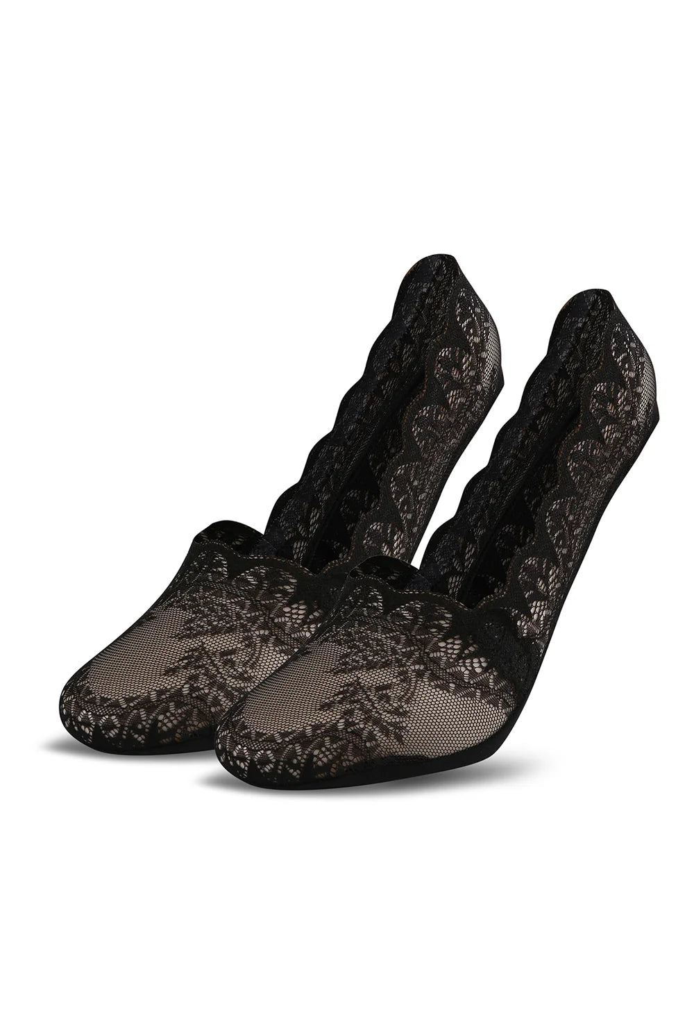 Koronkowe stopki damskie wz. 24 Nero – roślinna koronka i stabilne trzymanie