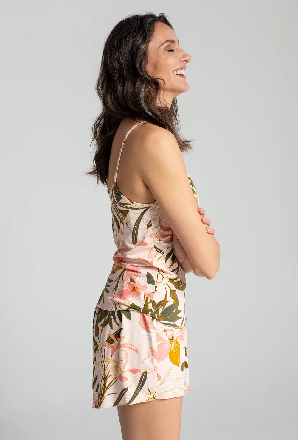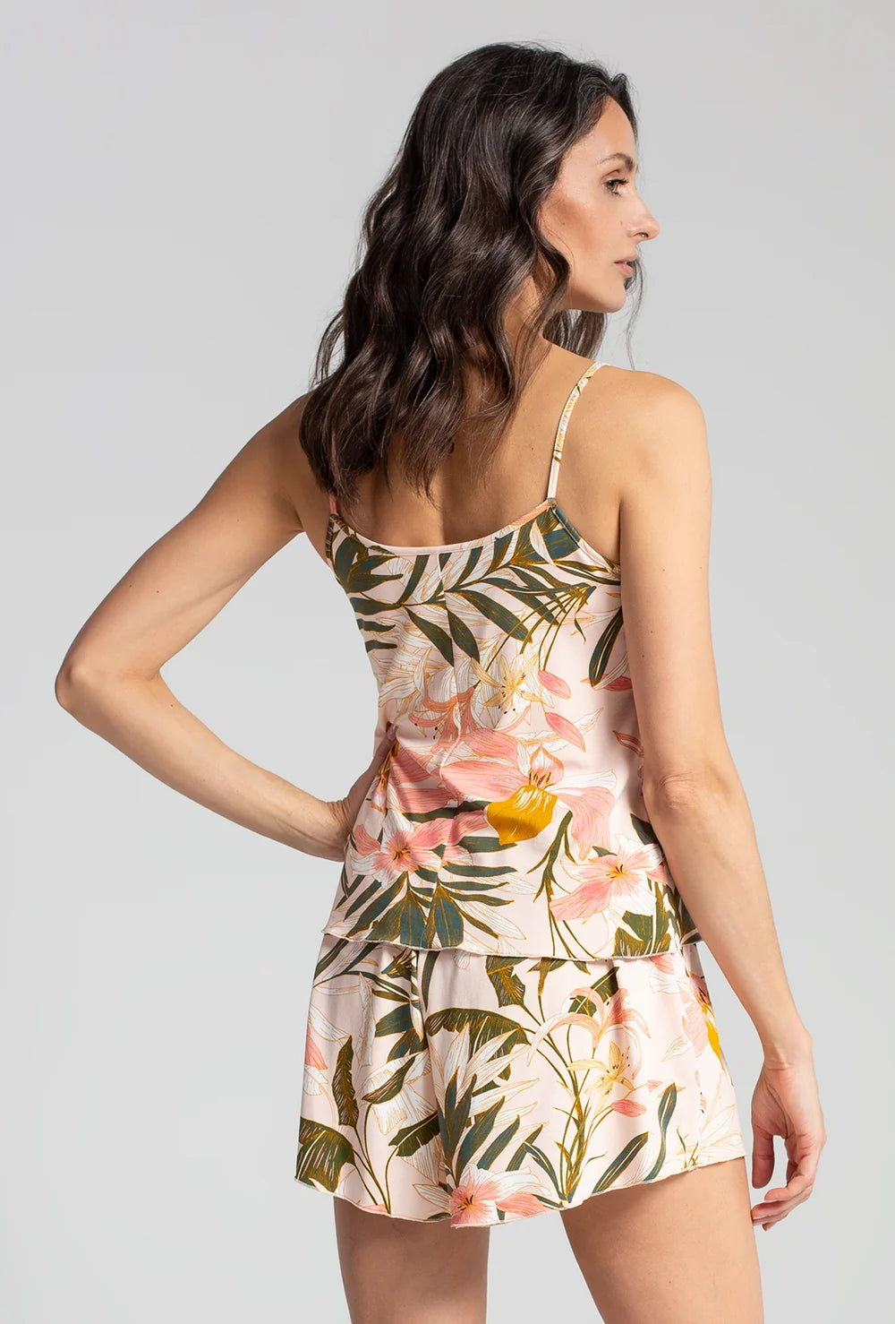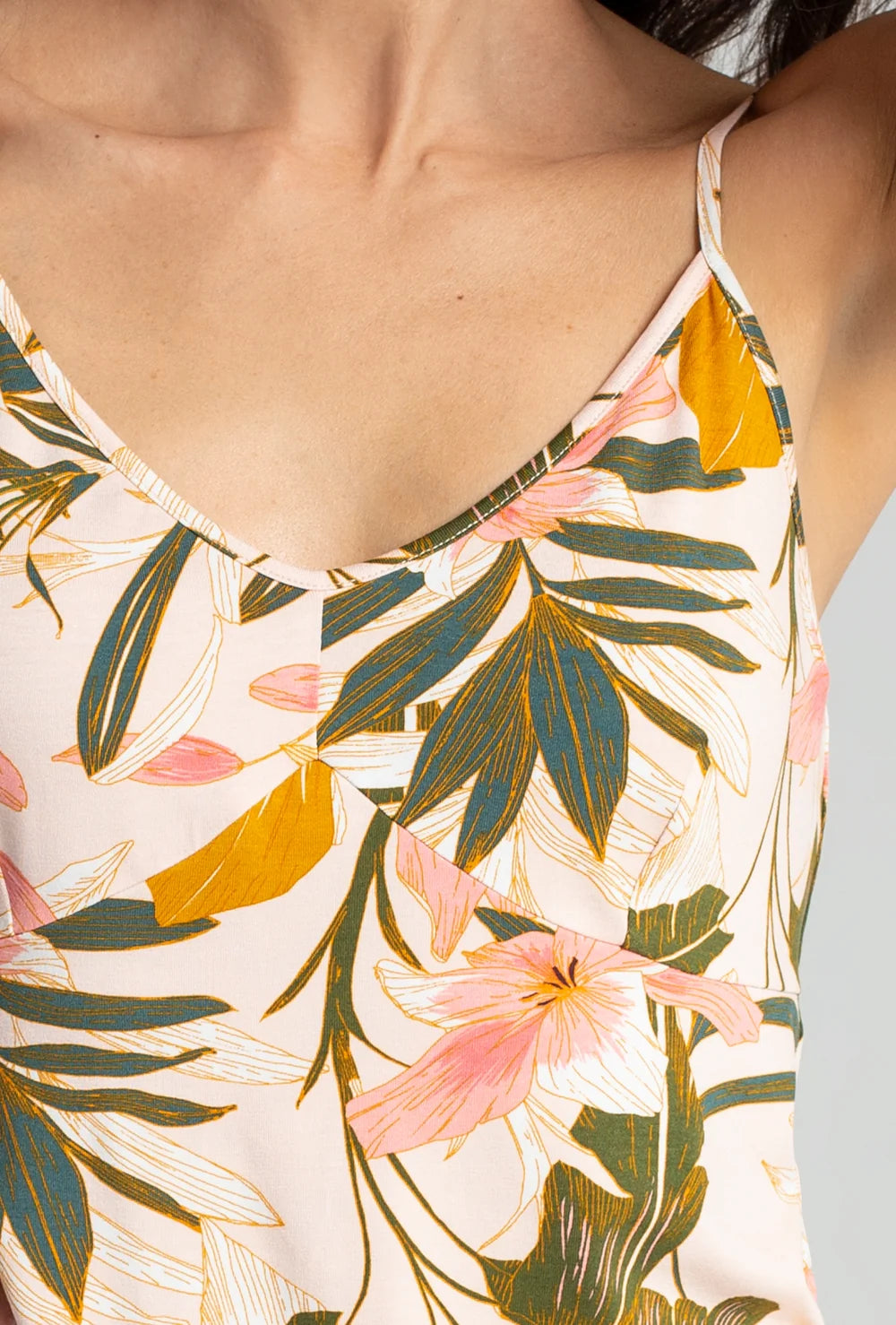 Kto powiedział, że te elementy naszej garderoby, które towarzyszą nam podczas snu, nie mogą być kobiece i pełne powabu? Damska góra od piżamy Cissus zachwyca w każdym calu! Dzięki cienkim ramiączkom zaakcentujesz linię ramion, zaś dekolt w serek pięknie podkreśli Twój dekolt. Z pewnością ucieszy Cię wiadomość, że nasza koszulka na ramiączkach od piżamy została zaprojektowana w dwóch odsłonach. Jeśli jesteś miłośniczkom roślinnych motywów, do gustu przypadnie Ci góra od piżamy Cissus z florystycznym wzorem. Natomiast nasza druga propozycja to ukłon w stronę minimalizmu - gładka koszulka na ramiączkach od piżamy w kolorze pudrowego różu będzie kwintesencją kobiecej delikatności. Wybór należy do Ciebie!