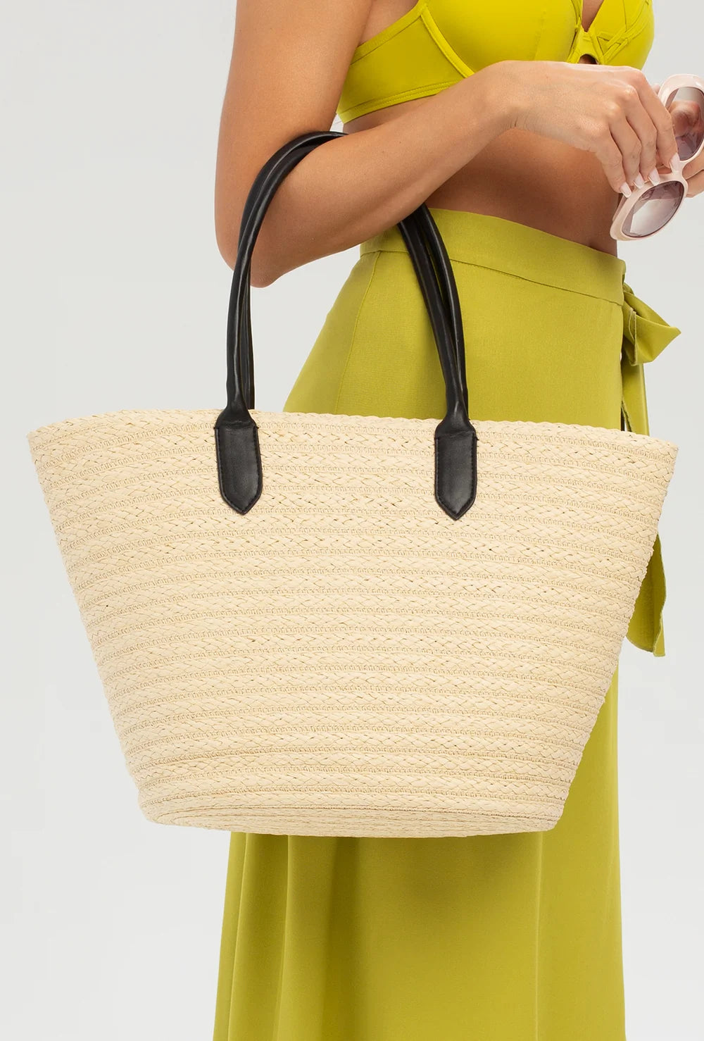 Podczas kupowania ubrań i dodatków zwracasz uwagę na ich jakość i skład? Jeśli tak, to świetnie się składa - i to dosłownie! Pleciony koszyk plażowy wykonano w 85% z papieru, podszewkę z bawełny, a uchwyty z materiału imitującego skórę. Dodatkowo torebka ma na tyle minimalistyczny design, że dopełni nie tylko wakacyjne, ale także wszystkie wiosenne i letnie stylizacje. Jeśli więc cenisz sobie bliskość natury i uniwersalne dodatki, które posłużą Ci przez kilka sezonów, to nasza pleciona torba plażowa jest stworzona dla Ciebie. Zdecyduj się na jej zakup już dziś!