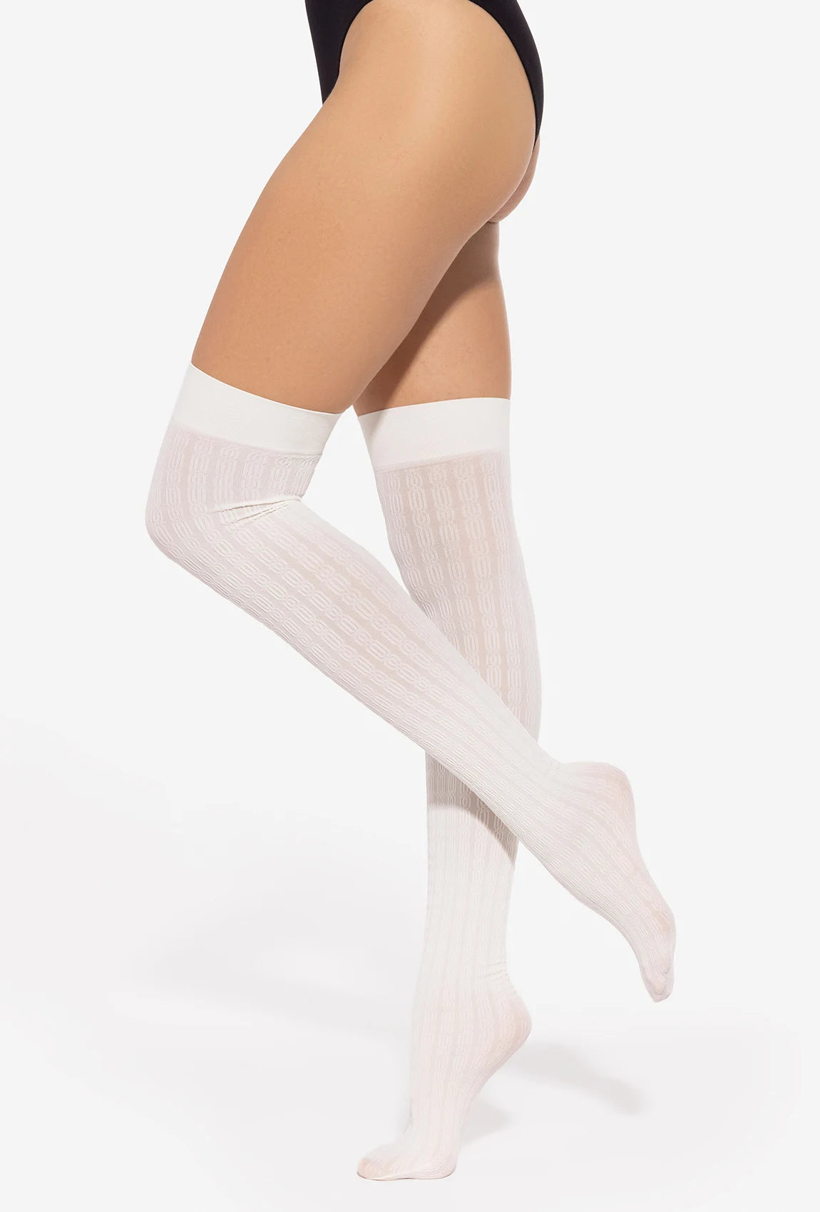Model 01 to zakolanówki, które podkreślają kobiecy styl w elegancki sposób. Ich wzorowana struktura i matowe wykończenie nadają im nowoczesnego charakteru, a kremowy kolor dodaje lekkości i świeżości. Kryjąca tkanina sprawia, że są praktyczne i estetyczne – idealne do jesiennych i zimowych stylizacji.