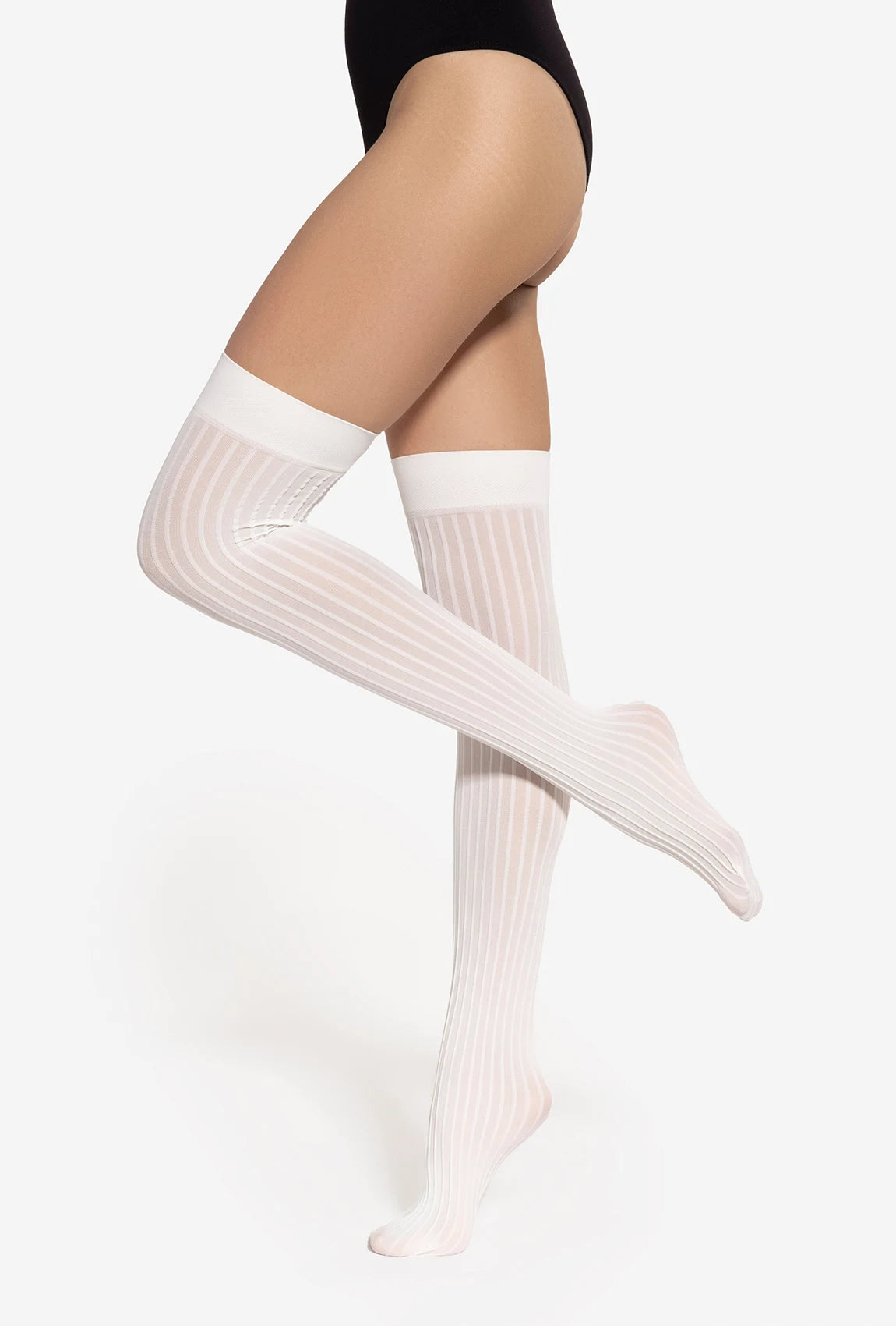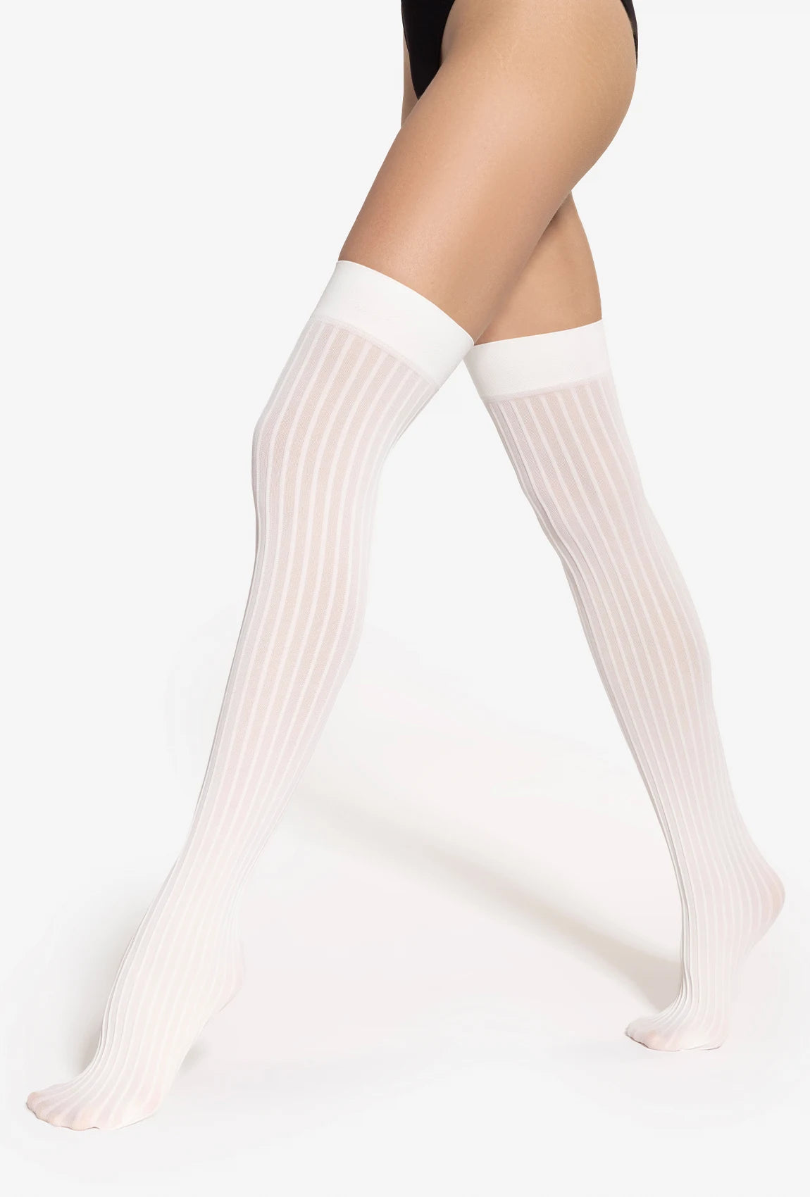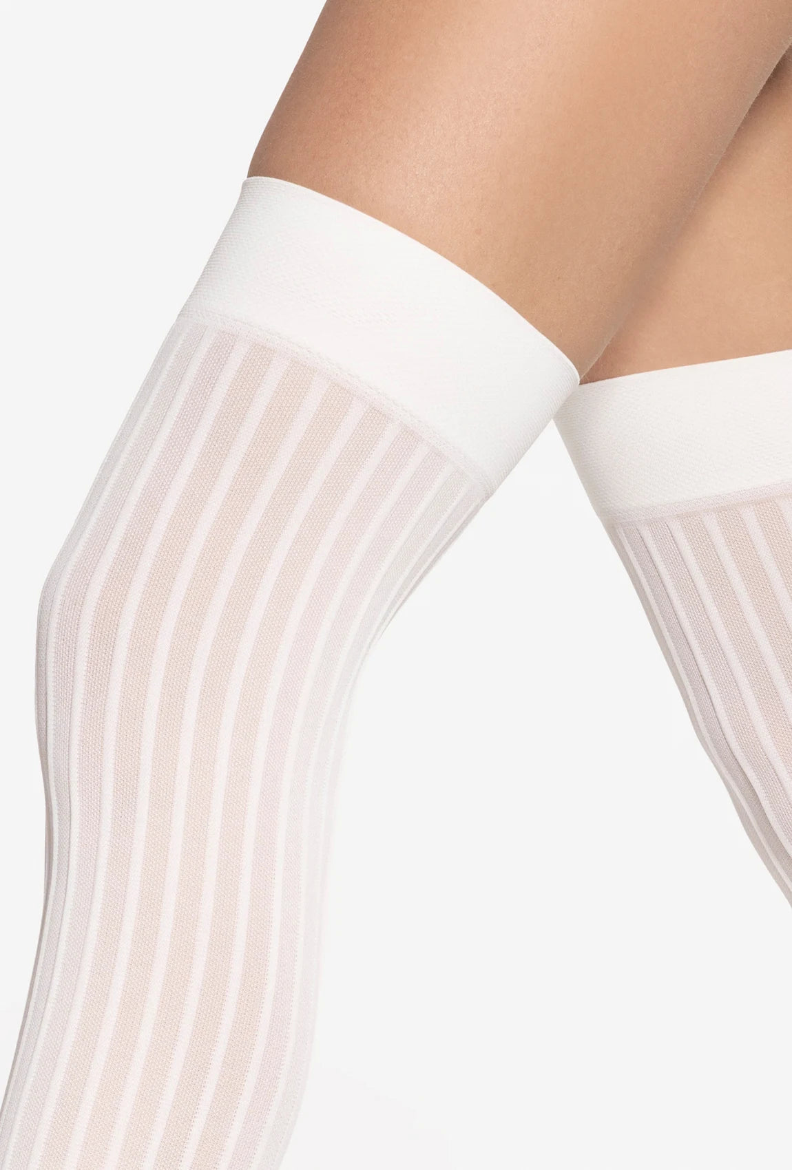 Zakolanówki 02 wyróżniają się subtelnym prążkowanym wzorem, który dodaje im faktury i modnego charakteru. Ich kremowy odcień Off White jest uniwersalny i łatwy do zestawienia z różnymi kolorami – od beżu po szarości czy pastele. Kryjąca struktura i miękki materiał zapewniają komfort cieplny i idealne dopasowanie do nogi, nie powodując ucisku.