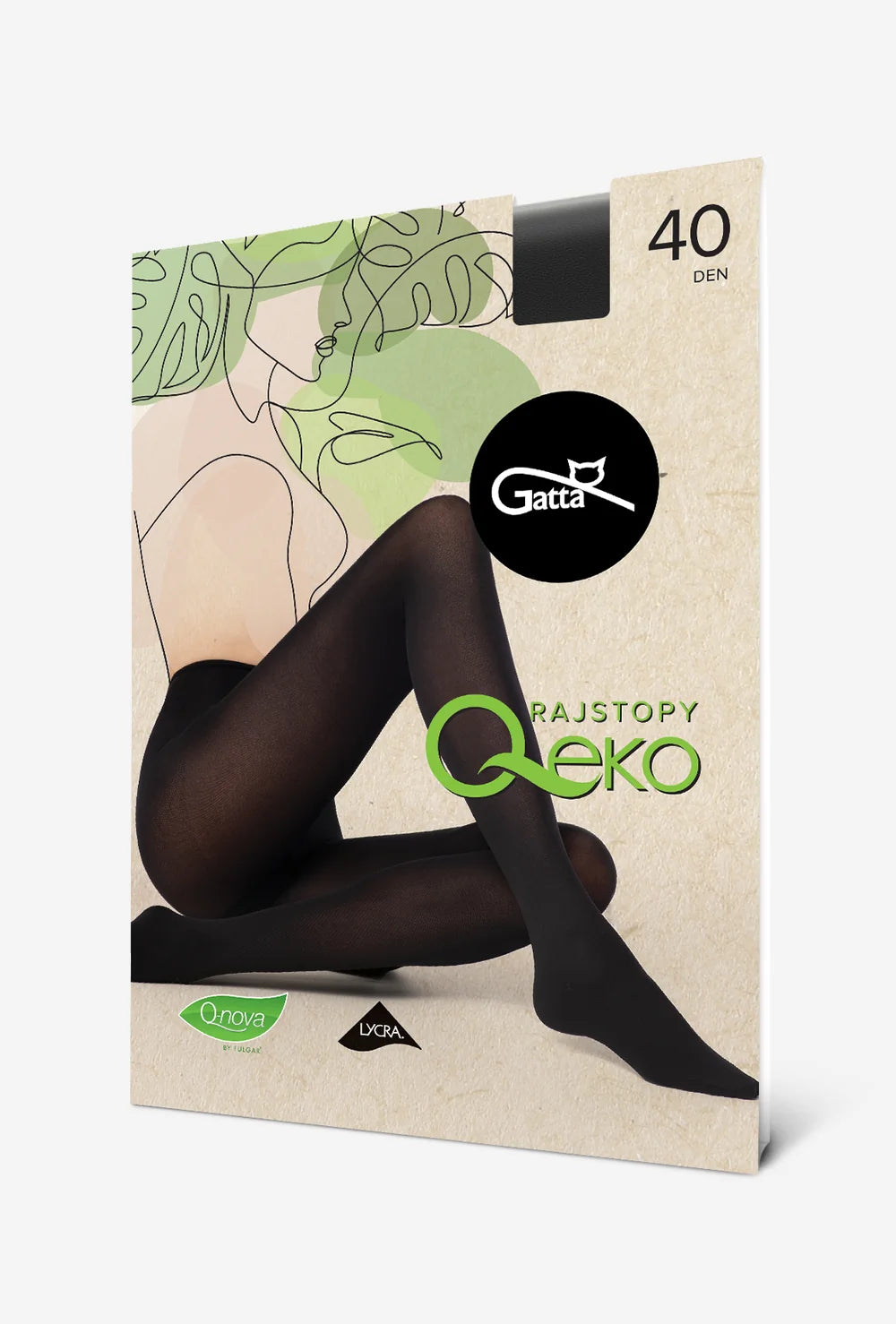 - Rajstopy Q-EKO o grubości 40 DEN charakteryzują się doskonałym kryciem. Elegancji dodają im niezaznaczona część palcowa oraz satynowe wykończenie, które optycznie wysmukla nogi.