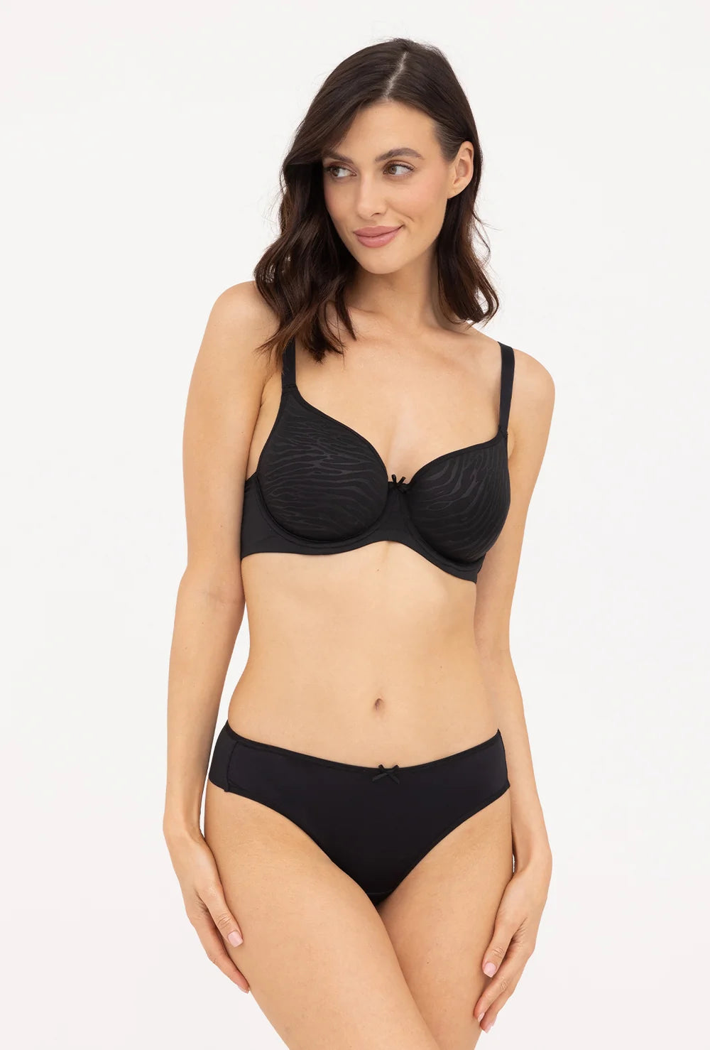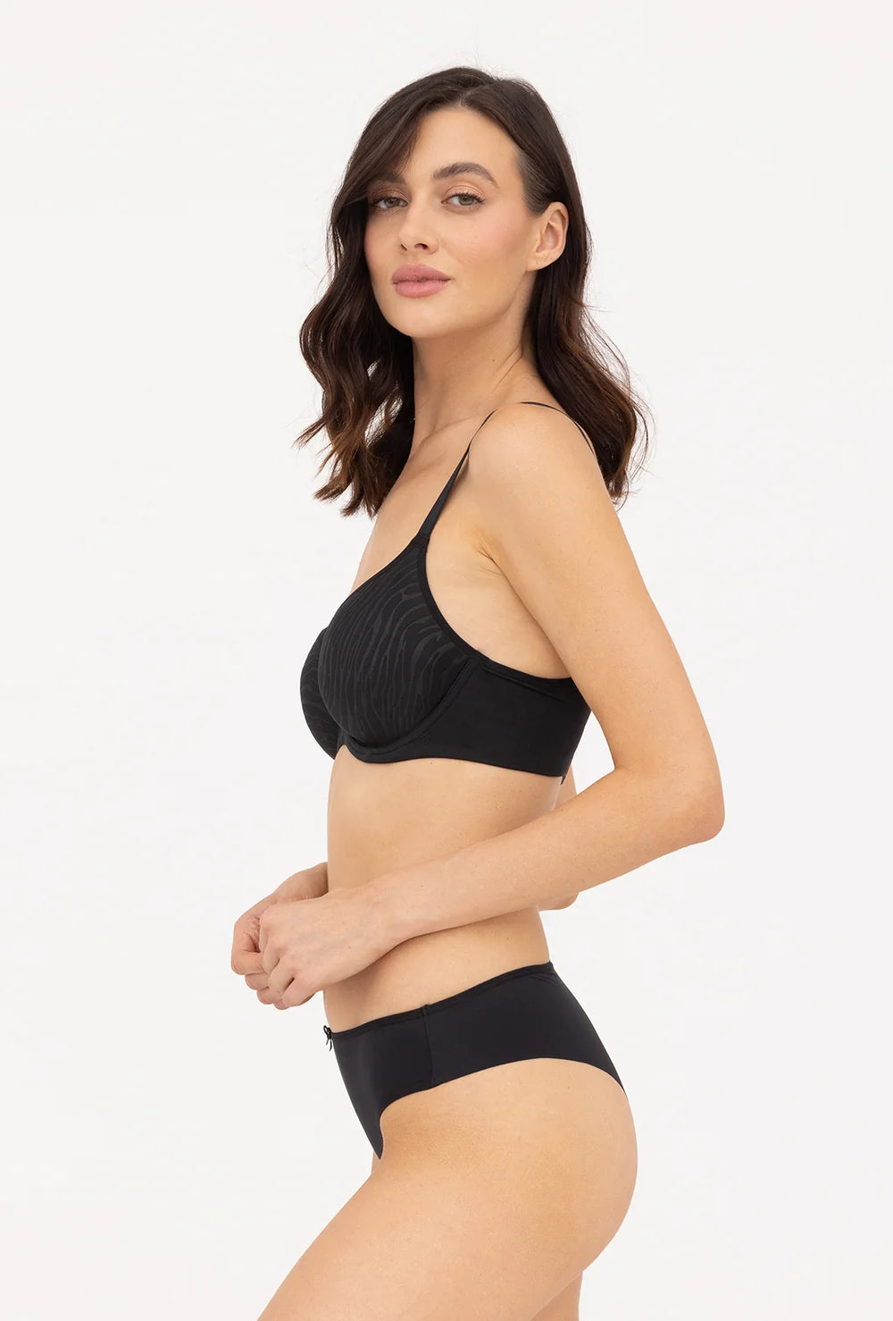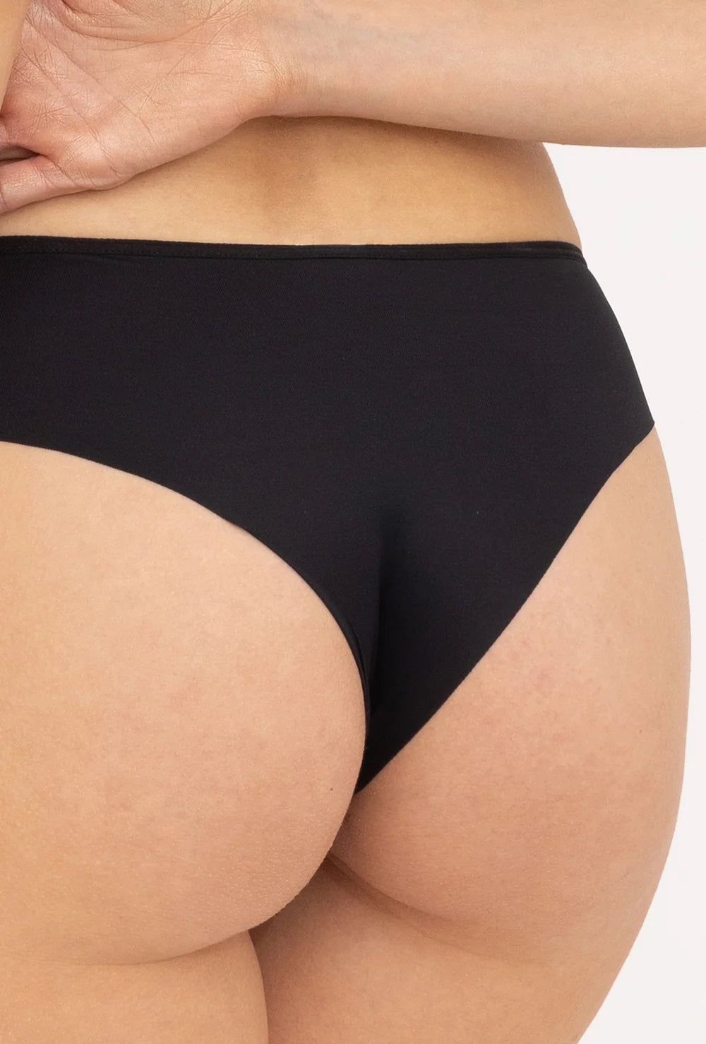 Komfort i ascetyczna elegancja mogą iść ze sobą w parze, a najlepszym dowodem na to są majtki Carla o fasonie brazylianów. Bielizna ta jest zaskakująco subtelna i wygodna w noszeniu. Sprawdzi się w codziennych stylizacjach - jest praktycznie niewidoczna i niewyczuwalna pod ubraniem. Na szczególną uwagę zasługuje laserowo cięty tył brazylianów - linie cięcia przechodzące ukośnie przez pośladki są cienkie, delikatne i nie odznaczają się nawet pod dopasowanymi spodniami.