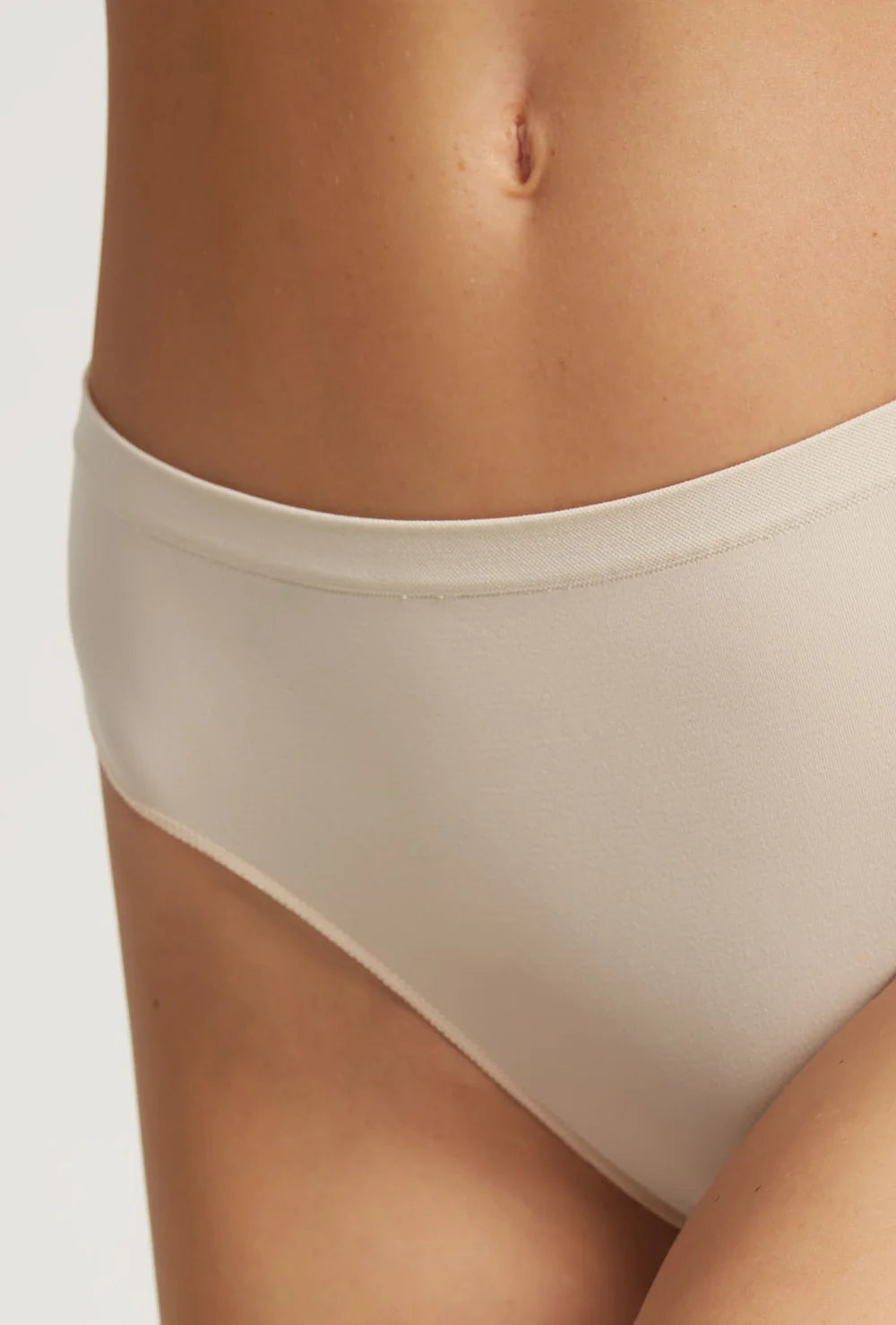 Sensual Skin Light Nude 2 to gładkie brazyliany z miękkiej dzianiny, o kroju eksponującym pośladki i z klinem antybakteryjnym. Neutralny beż i minimalistyczna forma sprawiają, że to praktyczna baza bieliźniana na cały rok.