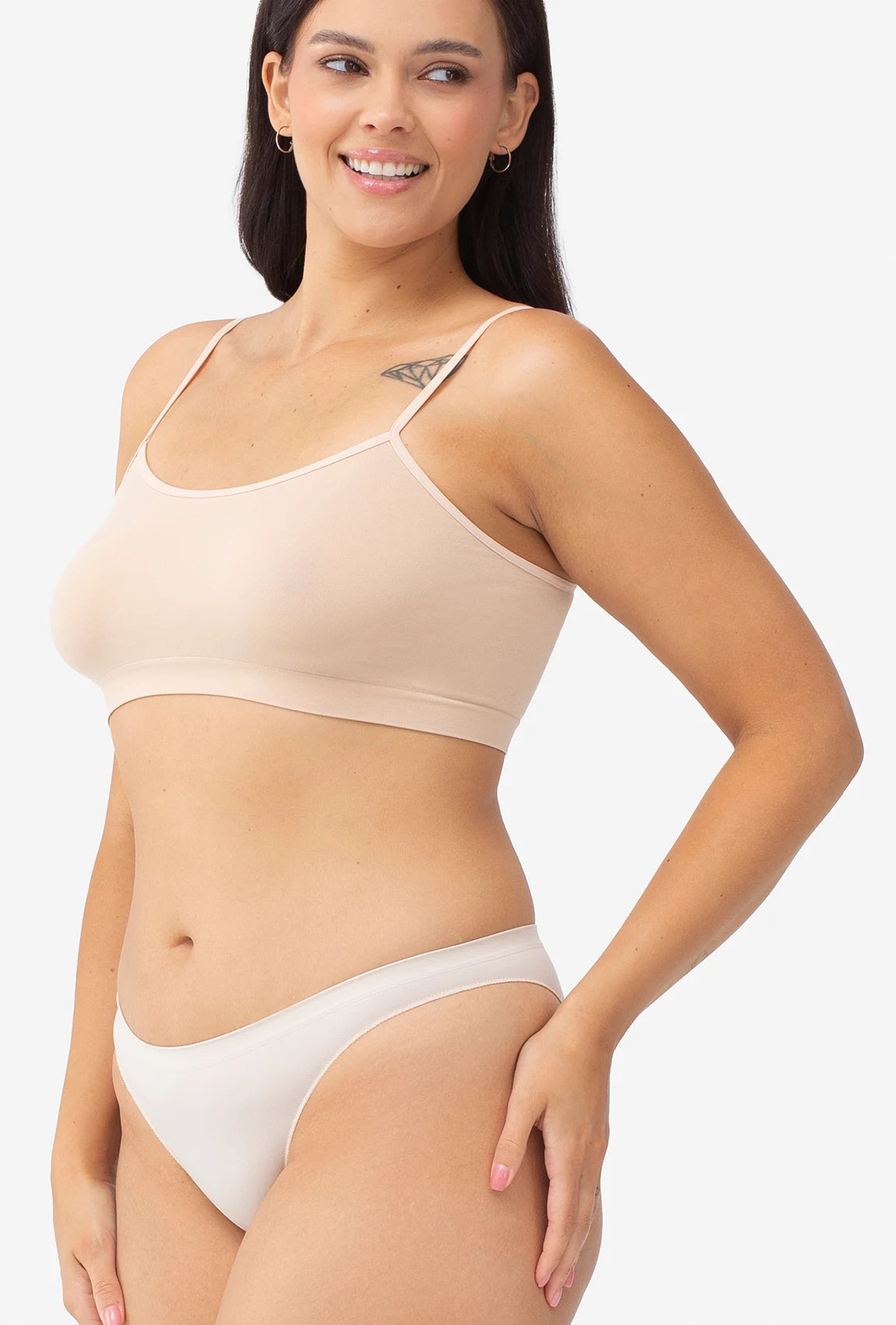 Bezszwowy krój to kolejny powód, dla którego warto mieć majtki tanga Sensual Skin w swojej szafie. Zastosowana technologia to mniejsze ryzyko podrażnień skóry i otarć. To rozwiązanie przekłada się także na większą elastyczność bielizny i precyzyjne dopasowanie do linii pośladków. Zwróć uwagę na jeszcze jedną kwestię - brak szwów sprawia, że bielizna Sensual Skin jest niemal niewidoczna pod ubraniem, nawet jeśli jest to ołówkowa spódnica czy obcisłe legginsy.