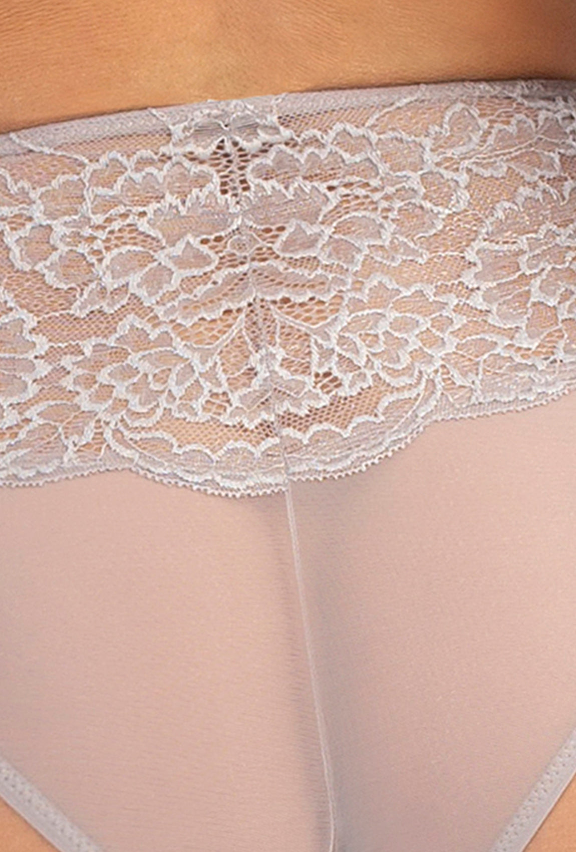 Frontowa część majtek Silver jest w całości koronkowa, delikatna i misterna. Tył zaskakuje pięknym koronkowym pasem w górnej części oraz transparentnym dołem, który eksponuje pośladki. Wyższy stan zapewnia komfort noszenia, optycznie modelując sylwetkę. To model na każdą sylwetkę i dostępny w kilku rozmiarach do wyboru. Jeśli majtki Silver od Gatta wpadły Ci w oko, zerknij również na biustonosz z tej samej linii- oba te elementy tworzą przepiękny i elegancki komplet na różne okazje.